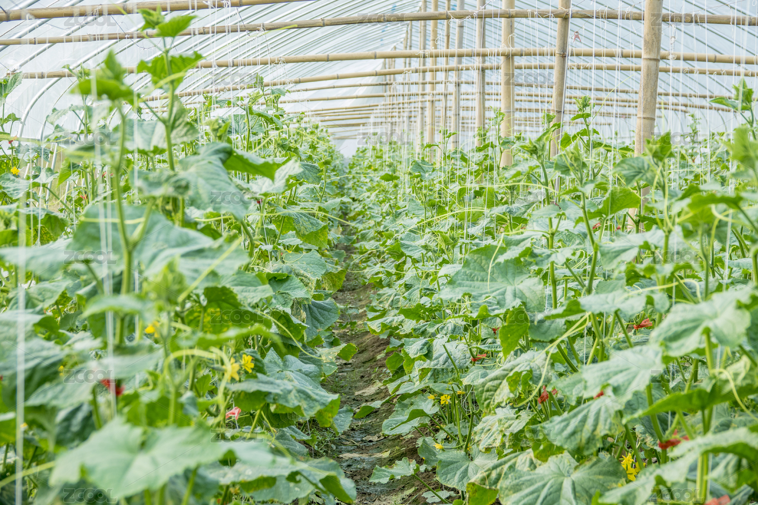 钢架大棚内遮阳网下成片种植的小雏菊,中国福建龙岩