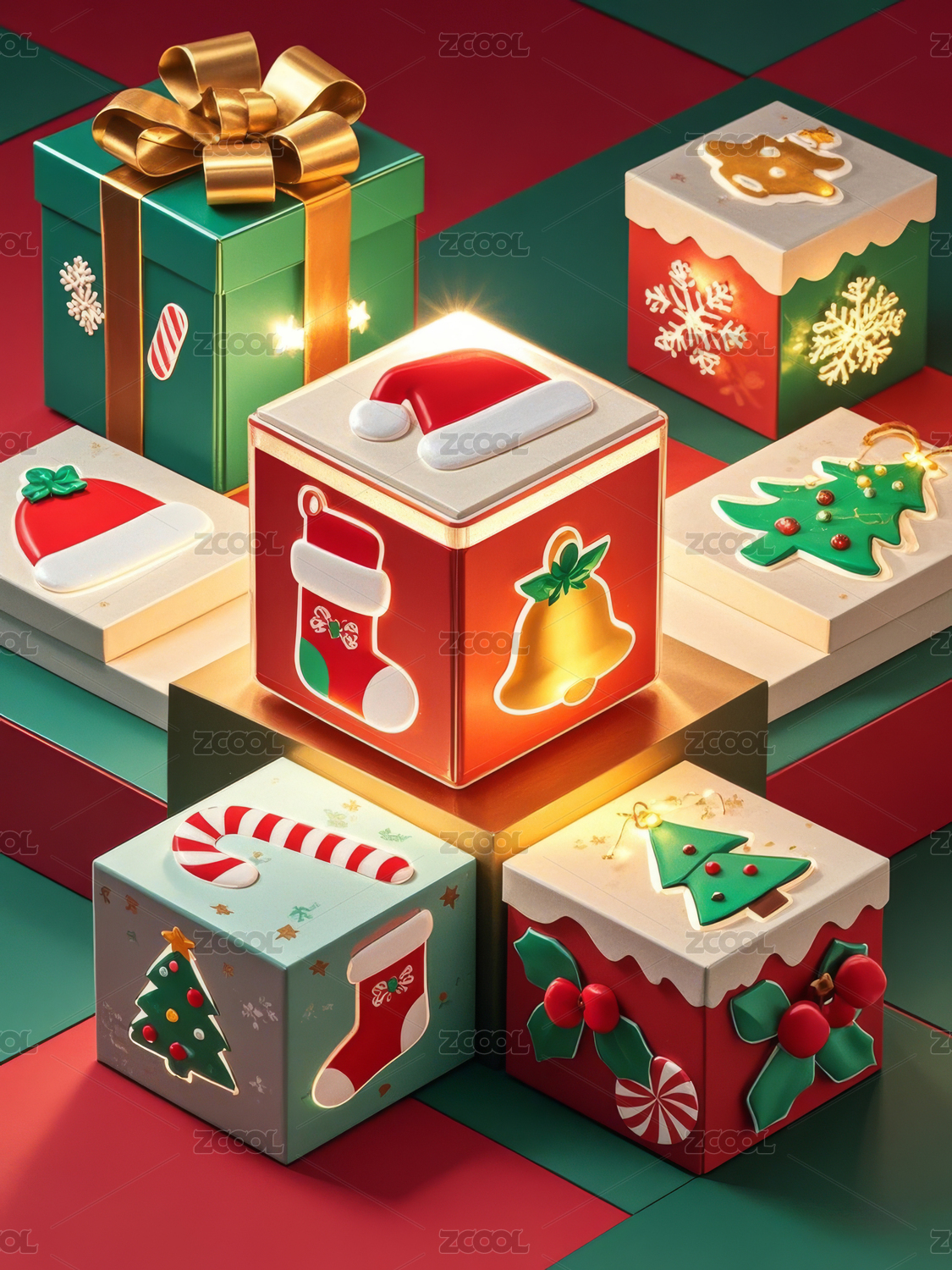 圣诞节,冬季,礼物盒,展开图,圣诞礼物,扁平插画,插画