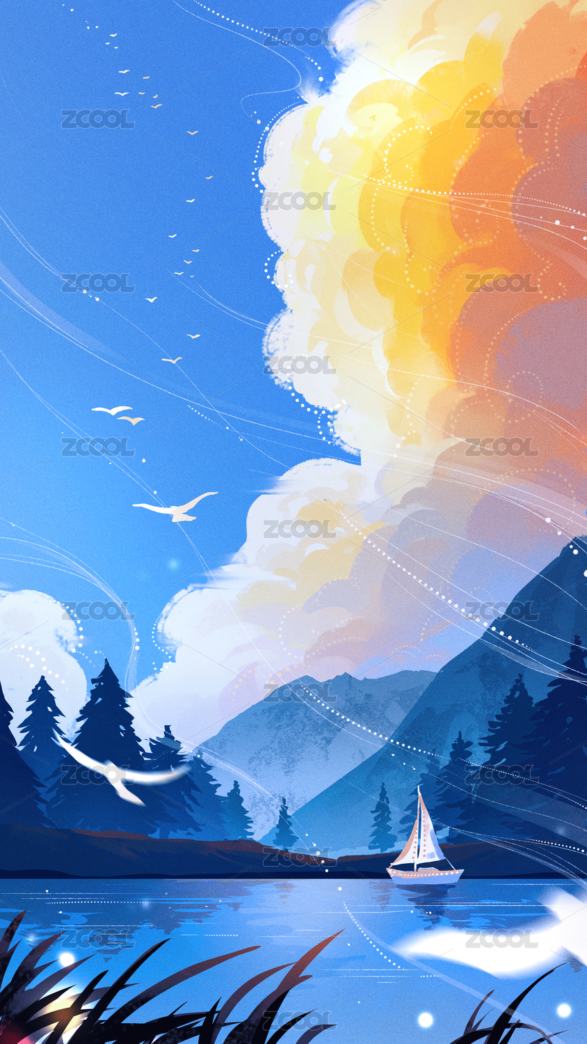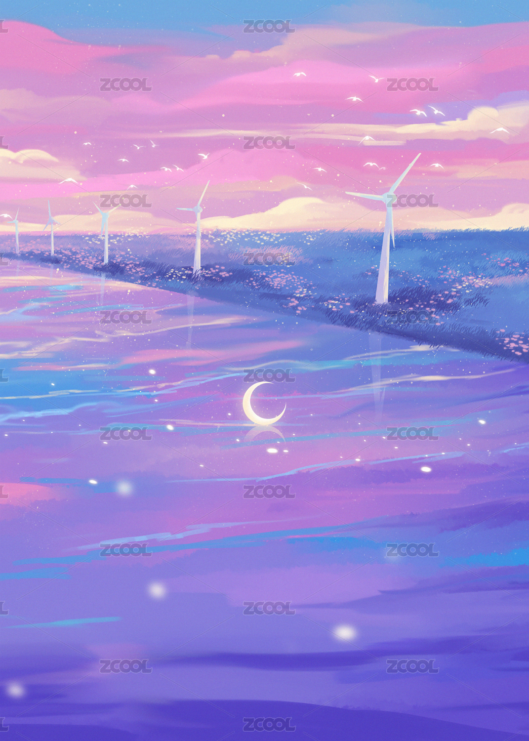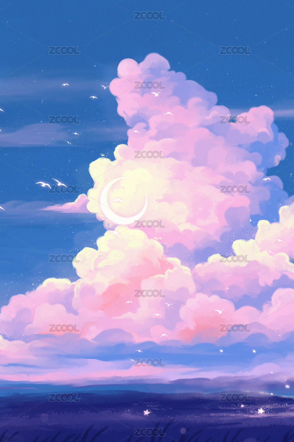 手绘唯美的抽象艺术感夜晚天空风景插画