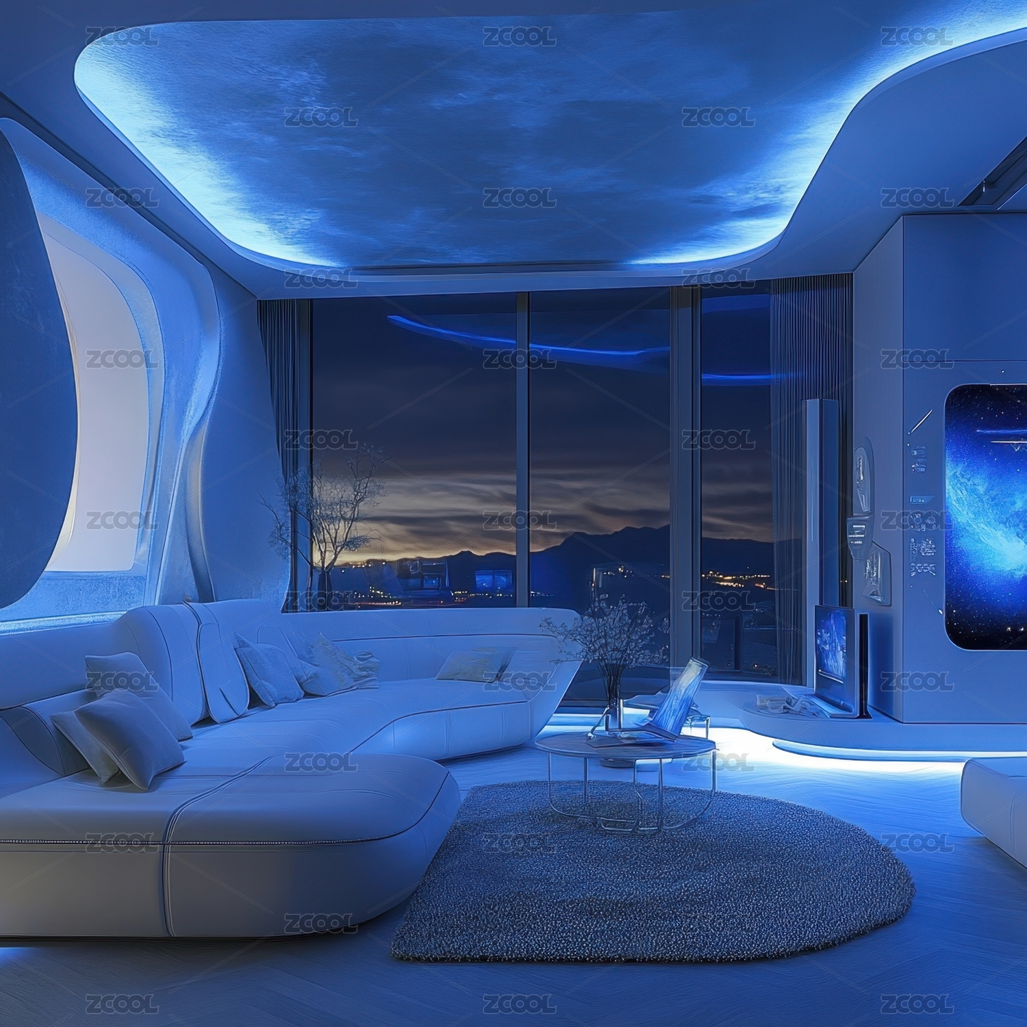未来主义的蓝色室内设计