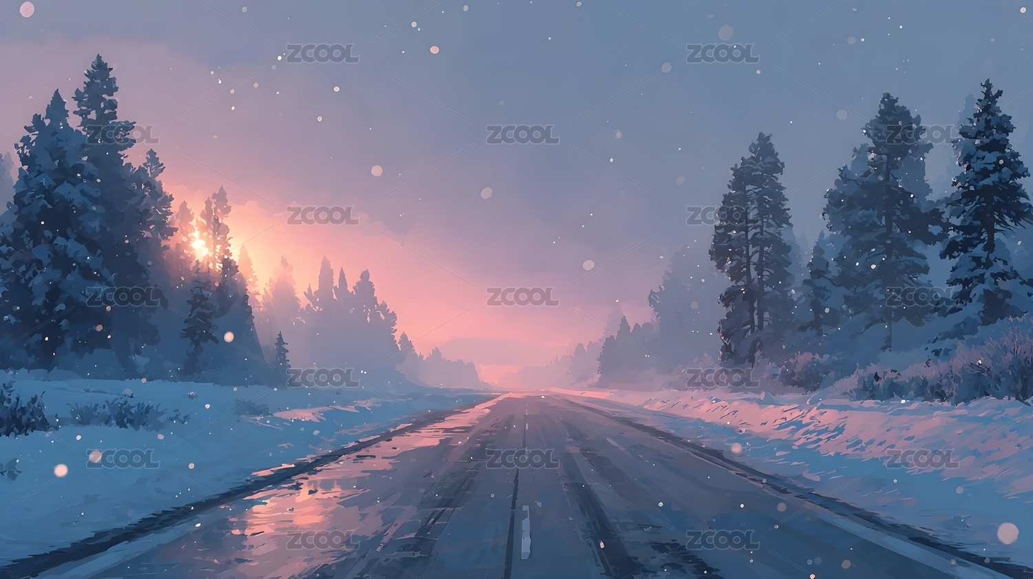 冬日雪路清晨美景