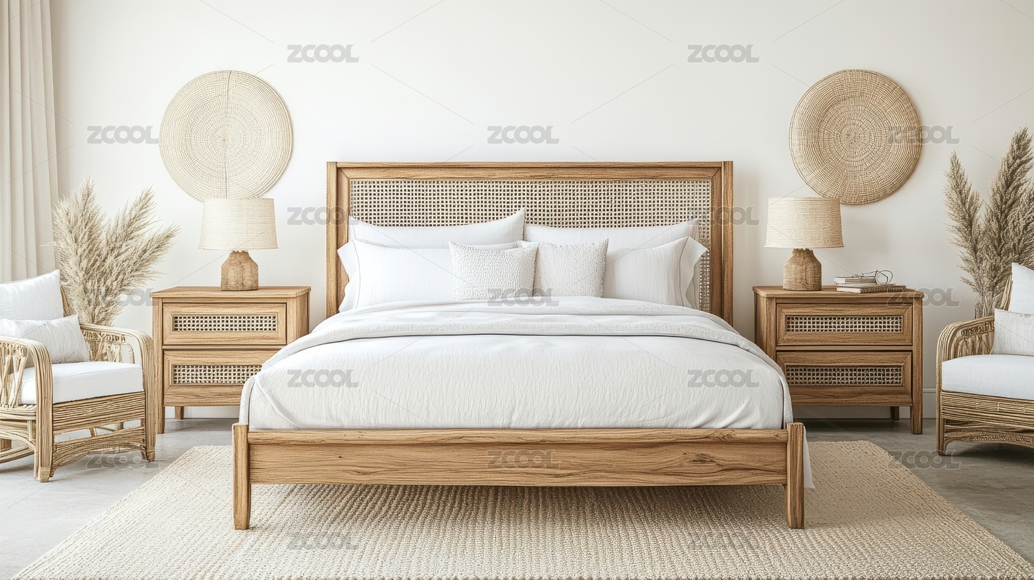 卧室,设计,极简,简约,木质,床,灯具,装饰画,藤编,床头柜