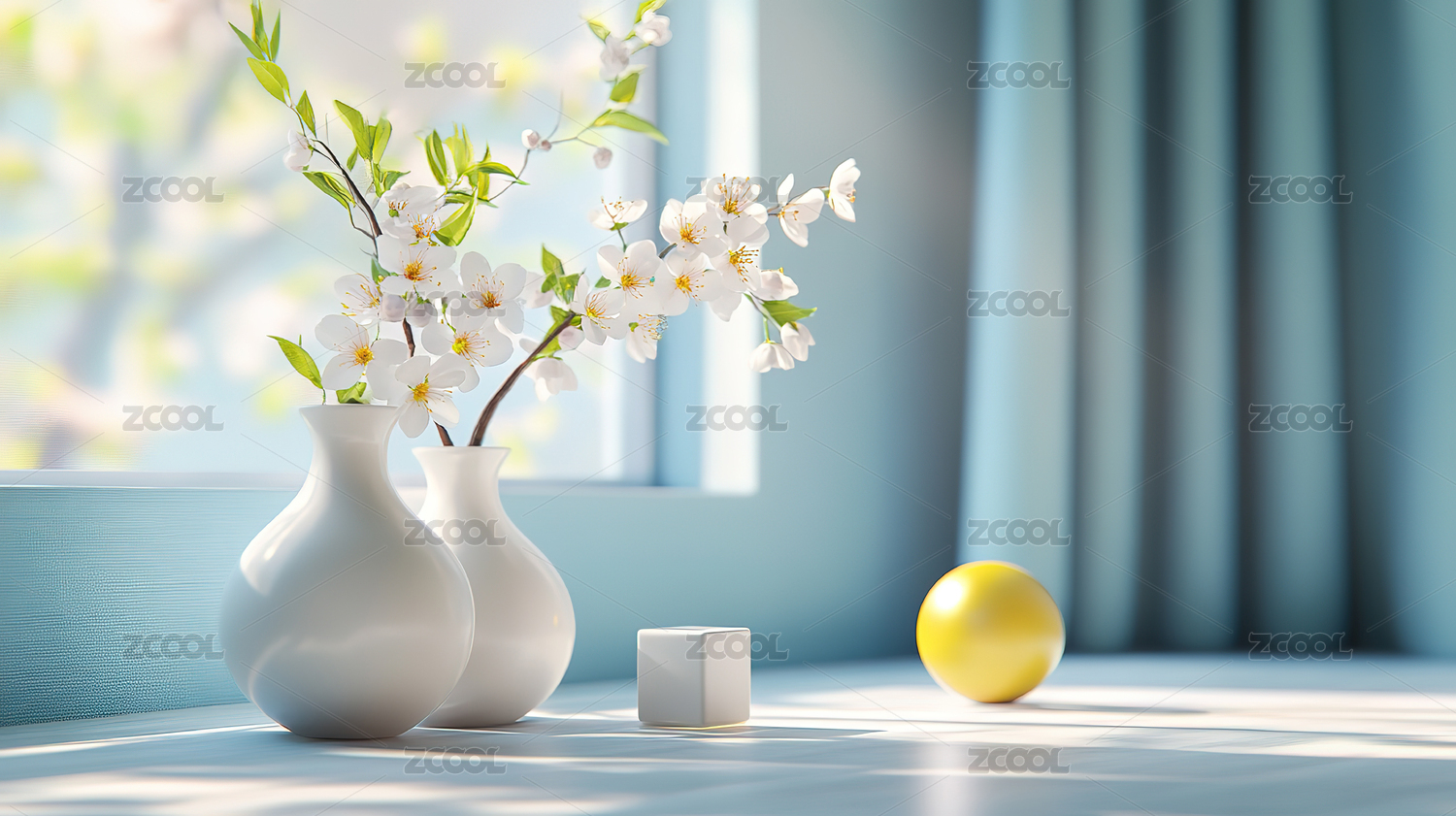 窗景花瓶清新室内场景