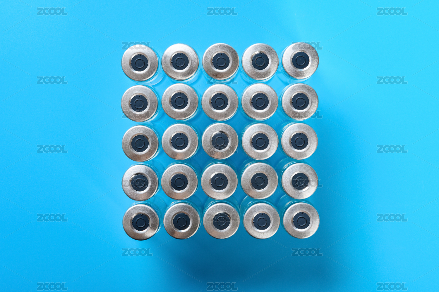 白底上倒立排列的一堆彩色塑料螺丝与铆钉