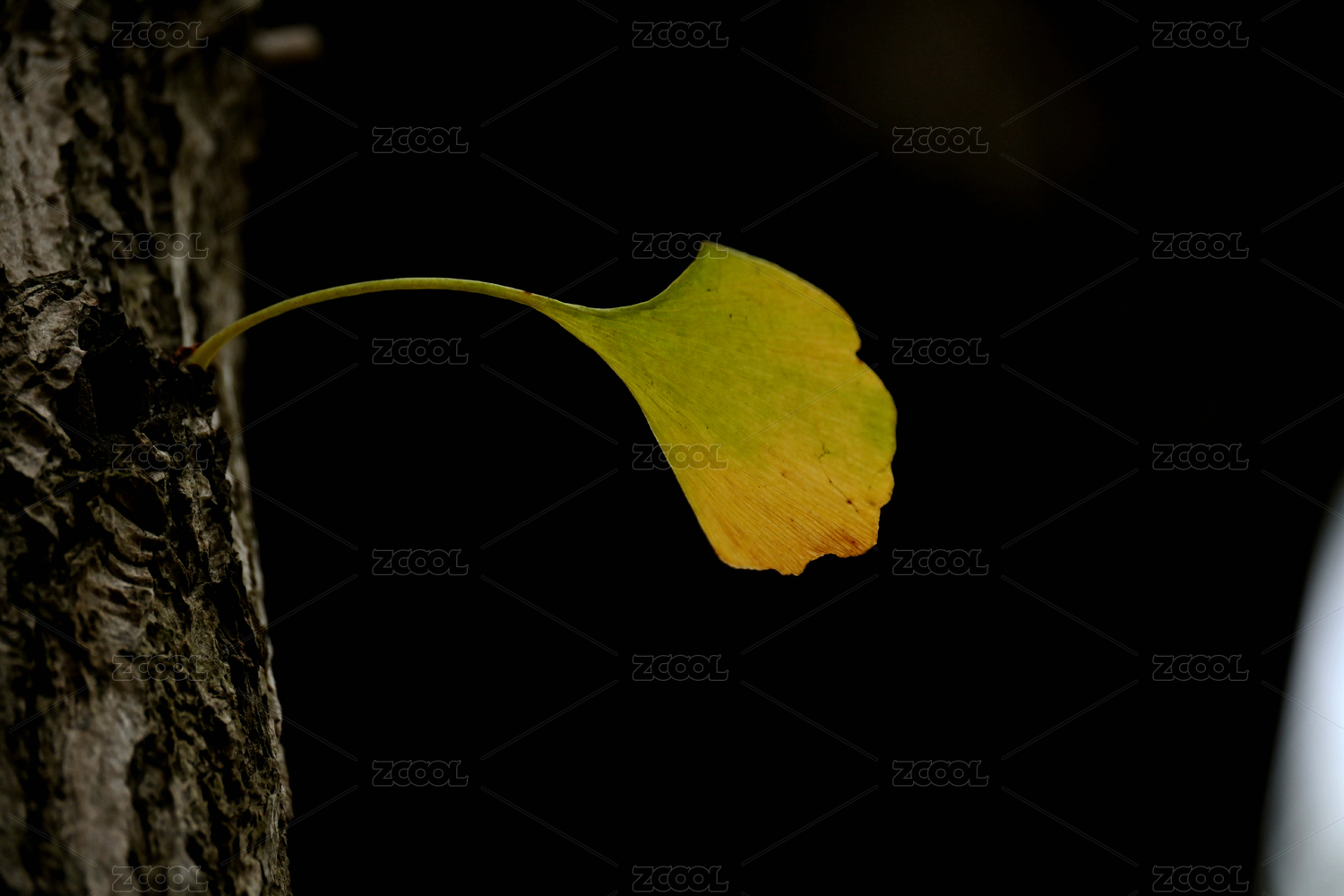 树干上的一片杏叶