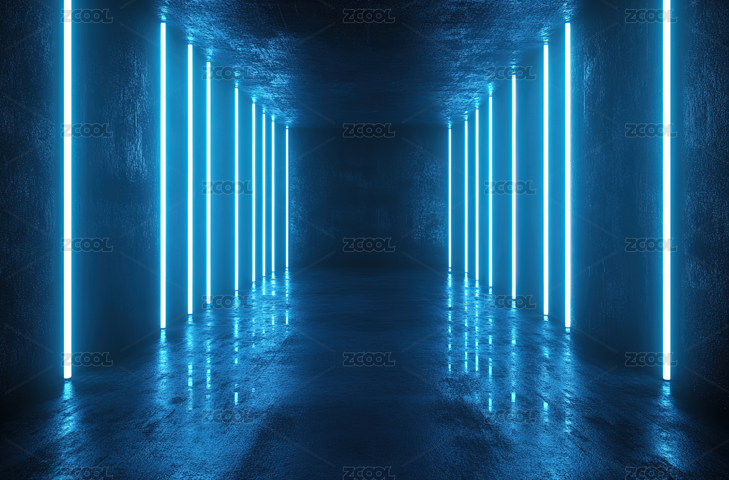 蓝色霓虹灯照亮的空旷空间