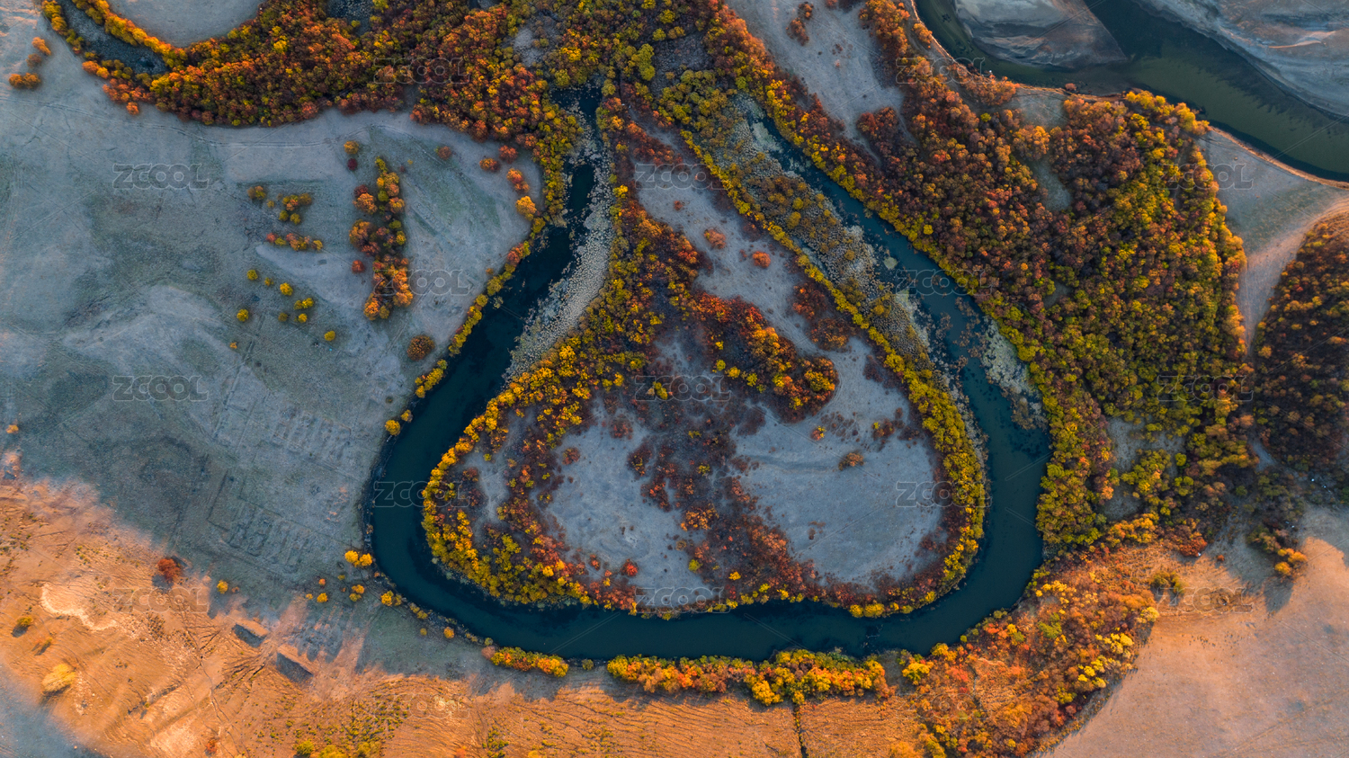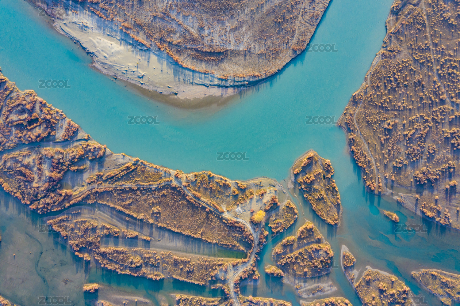中国,甘肃省,张掖市,黑河湿地,冬季,彩色,河流,航拍