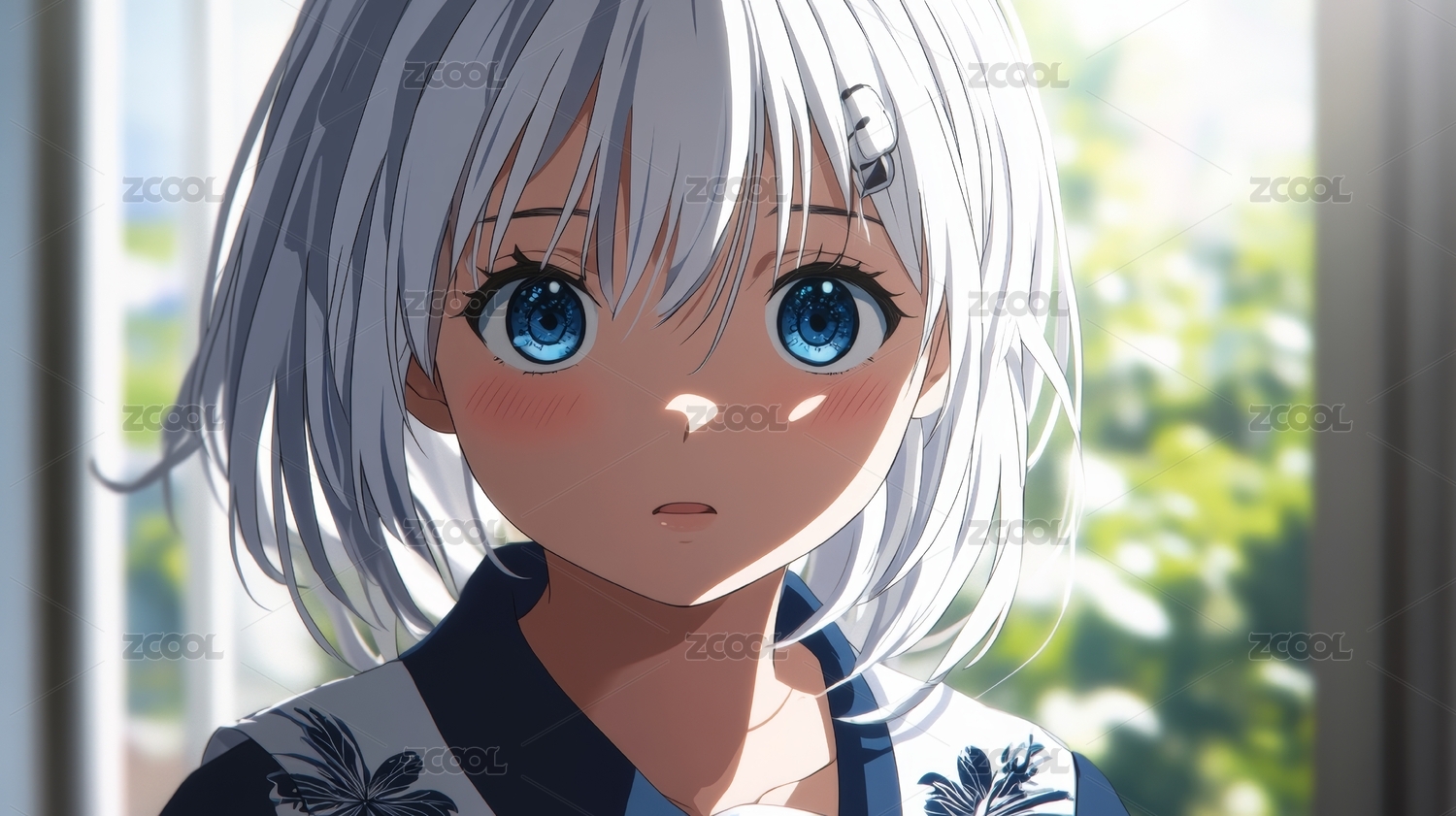 可爱的动漫女孩新海城风格唯美风格壁纸背景