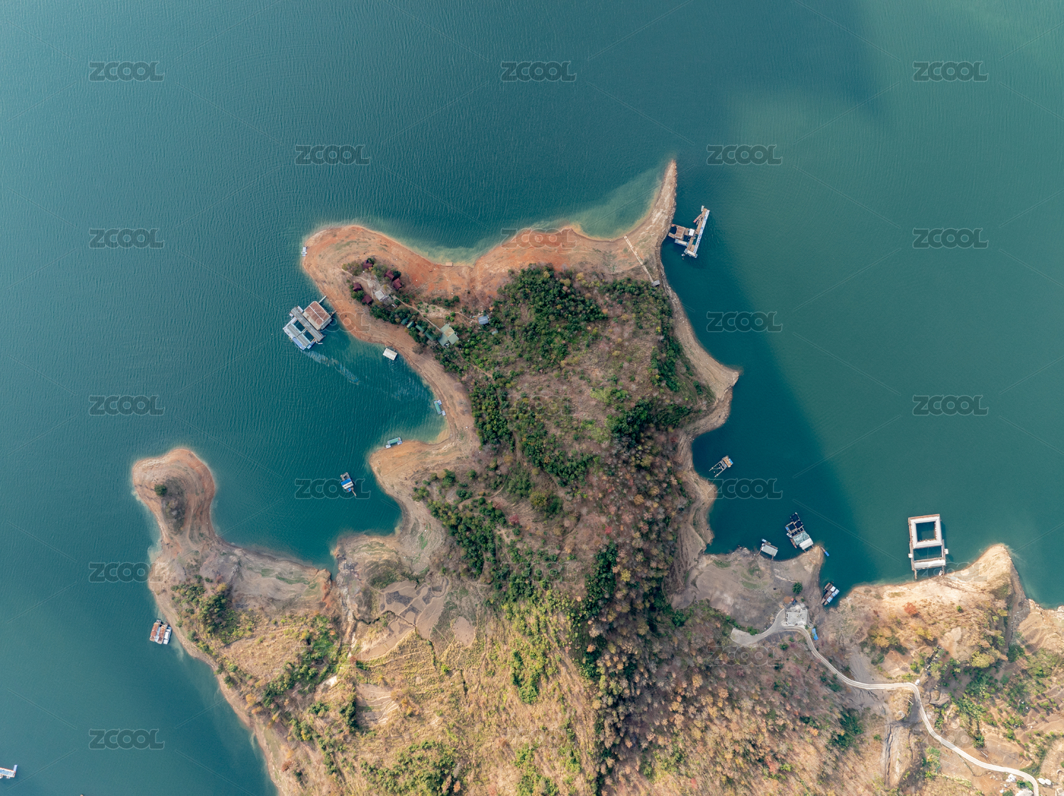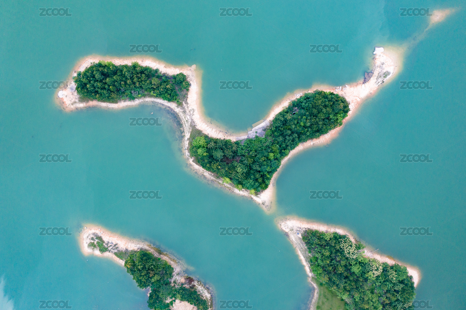 航拍中国安徽宣城郎溪县龙须湖鸟岛