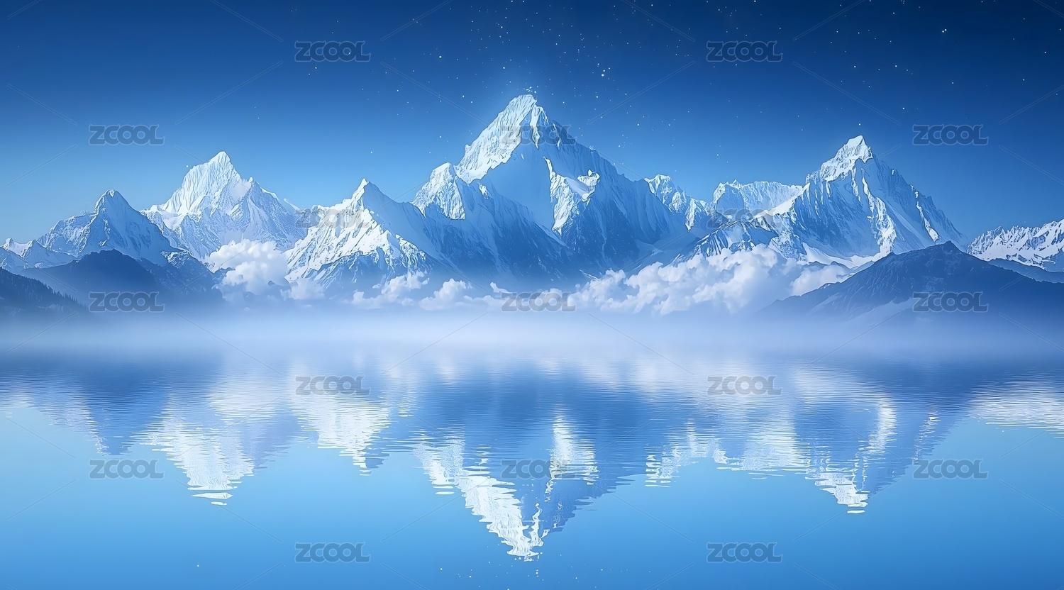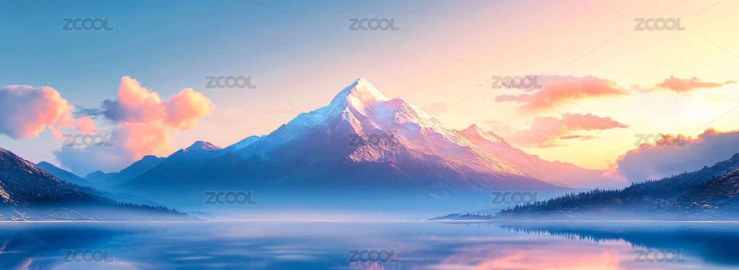 壮丽的山脉与云彩,阳光洒在巍峨的雪山上,