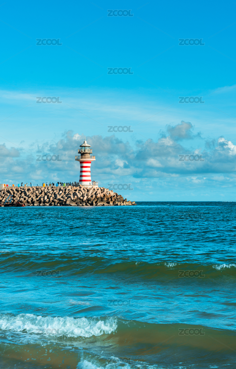 夏季白天广东汕头南澳岛钱澳湾灯塔风光