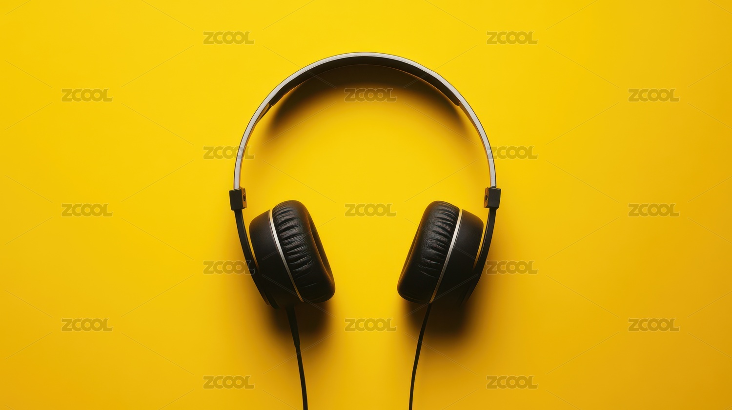黄色背景上的黑色有线耳机