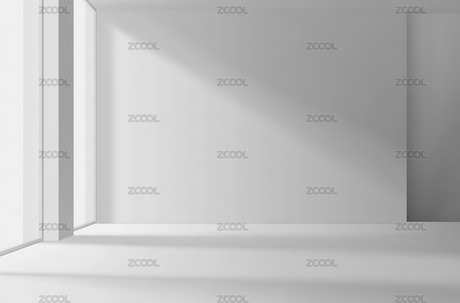纯白房间内一面空白墙面