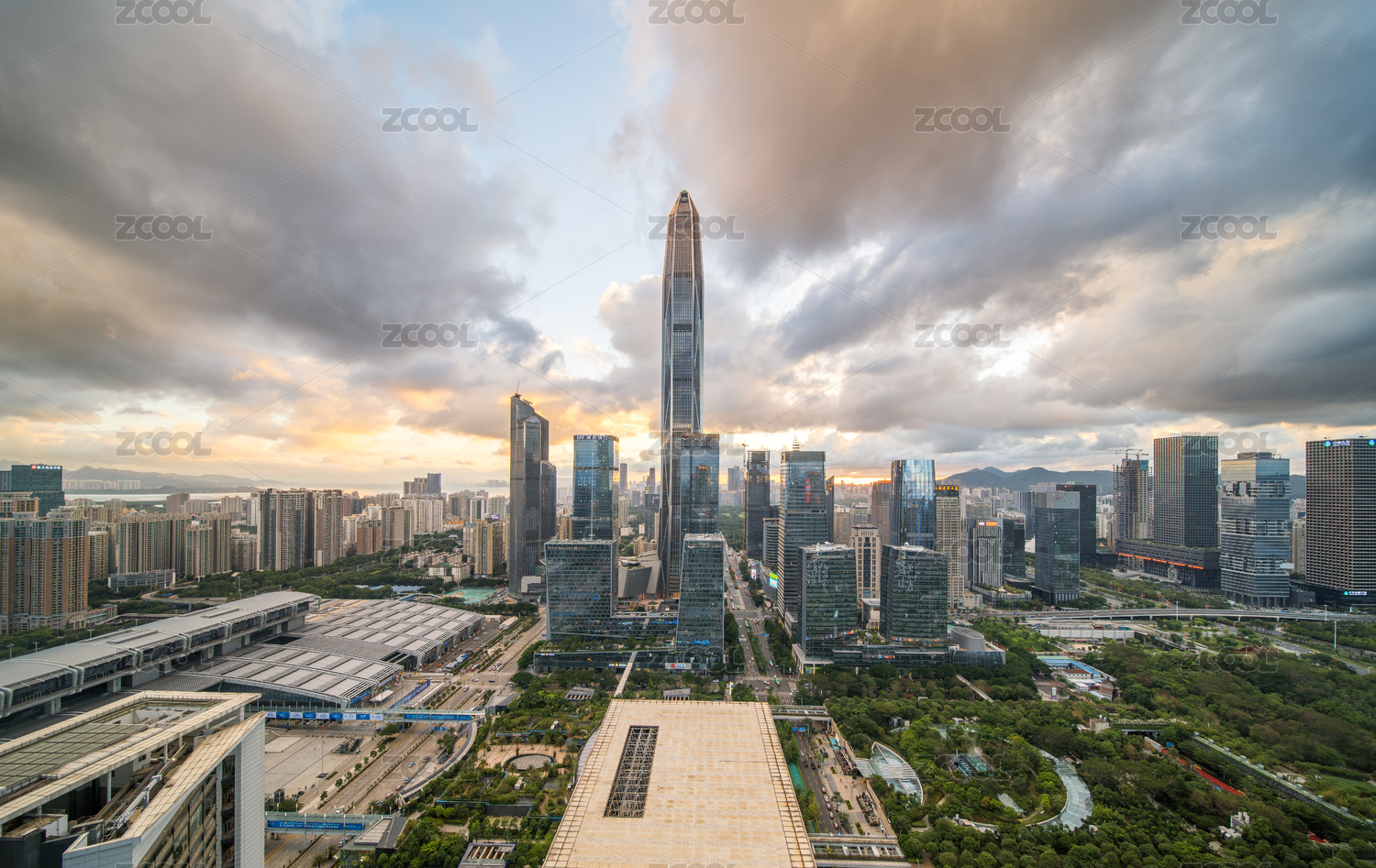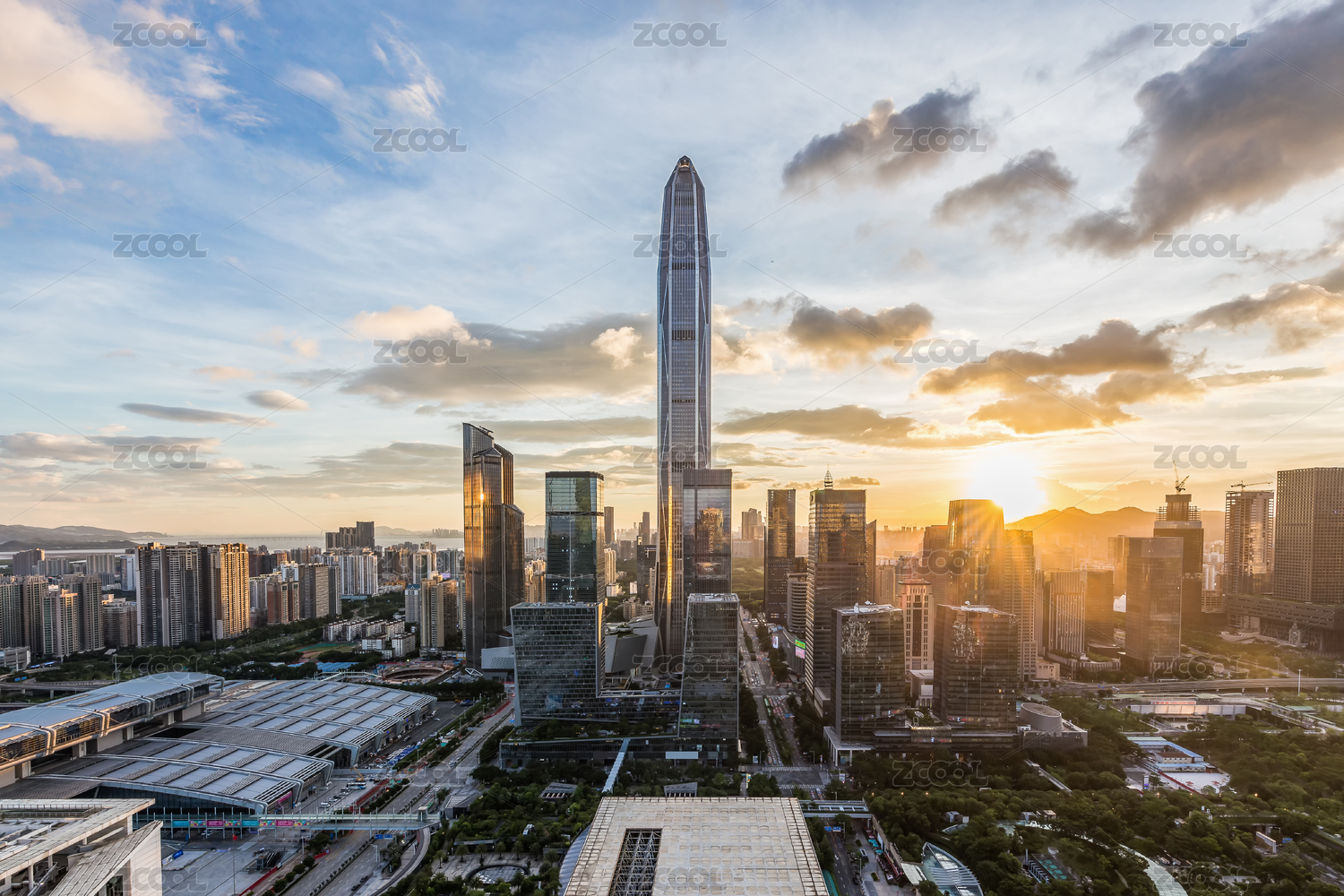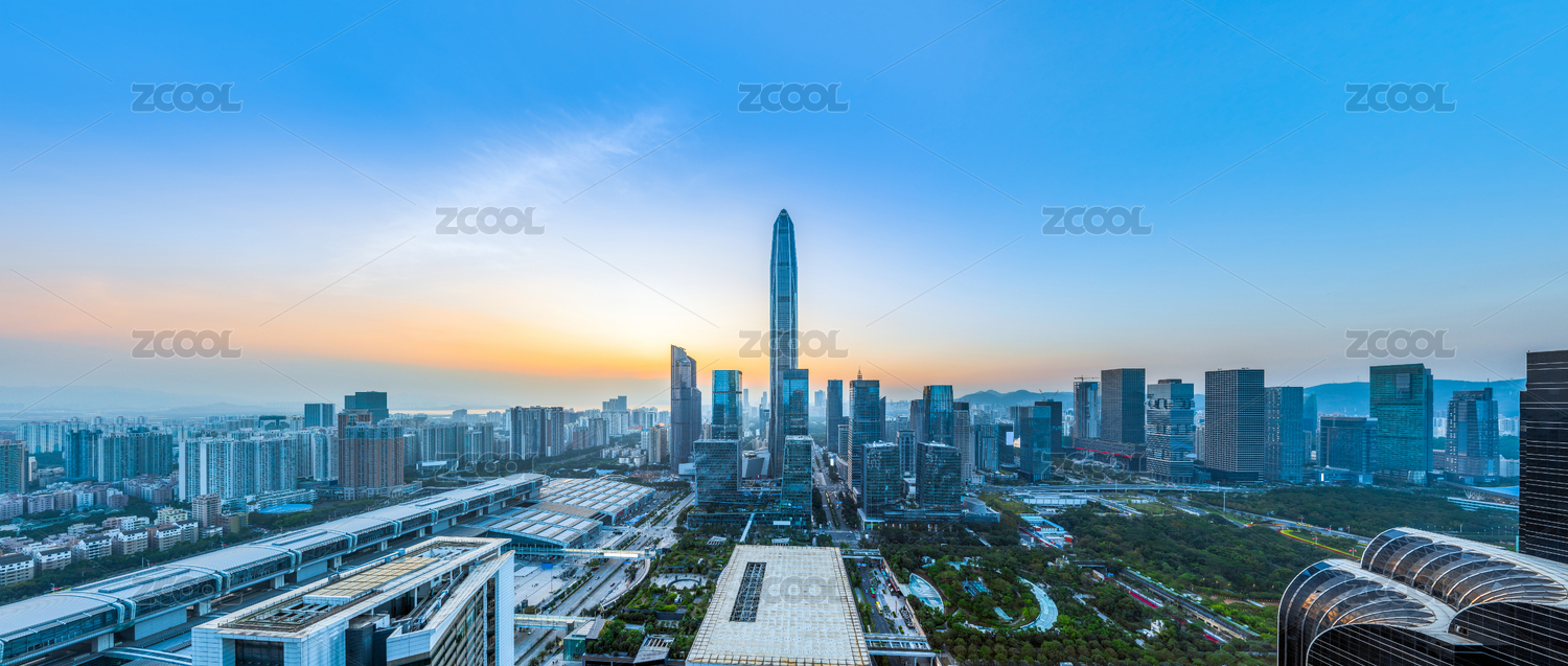 中国深圳平安金融中心天际线建筑群高楼大厦傍晚风光