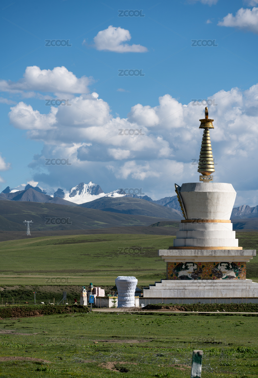 中国四川稻城亚丁的稻城白塔,又名尊胜塔林