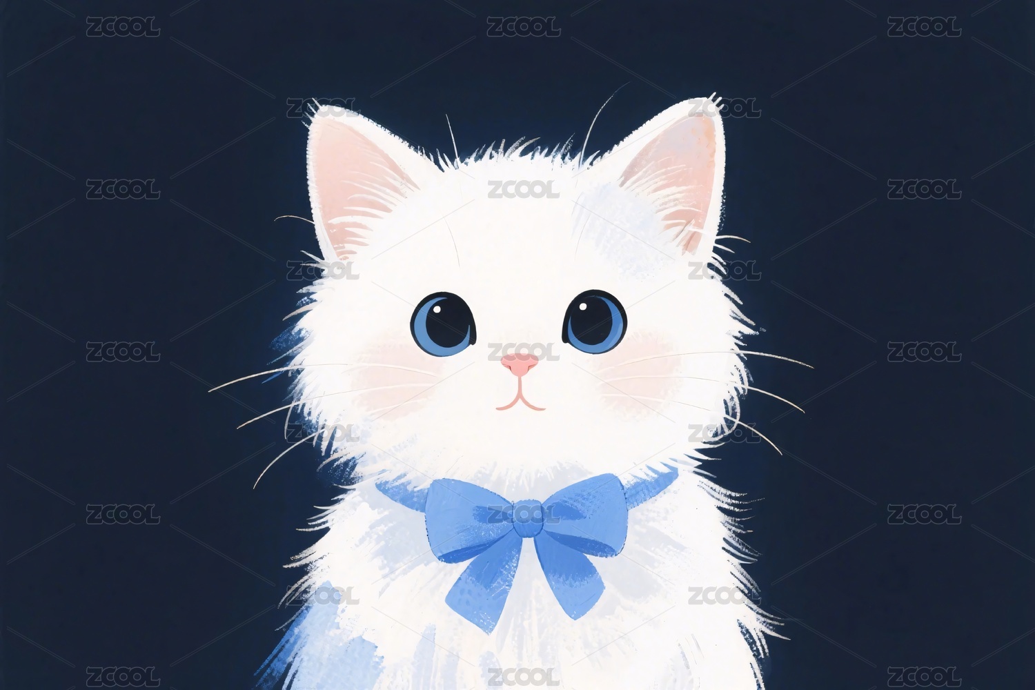 冬天戴帽子的可爱小猫治愈系壁纸插画