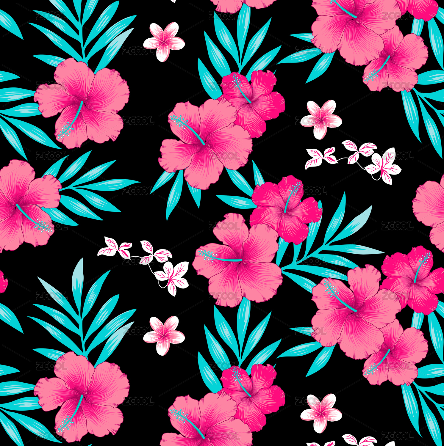 手绘插画,中性粉色和紫色,黑色背景花朵