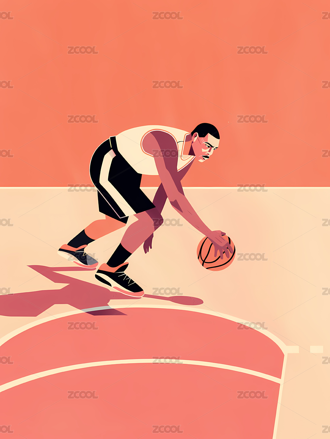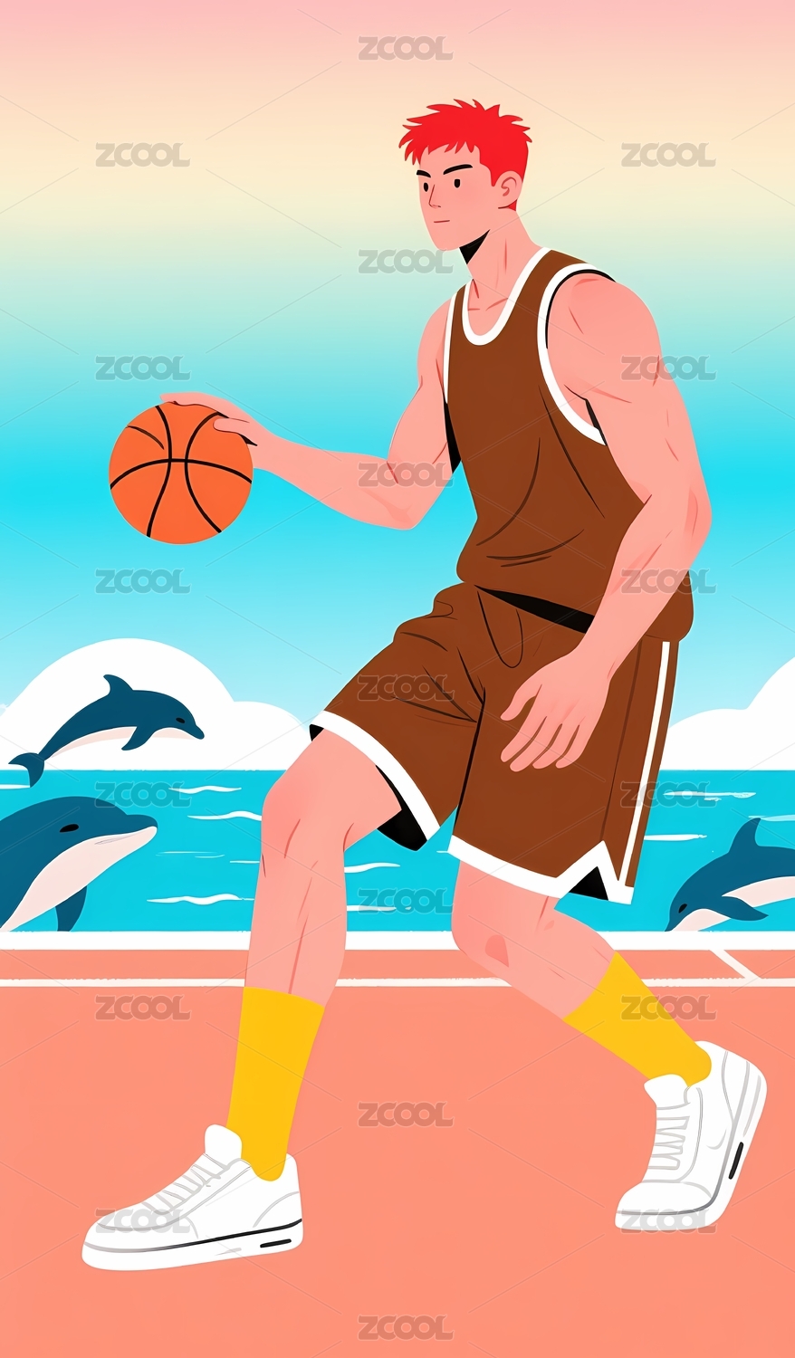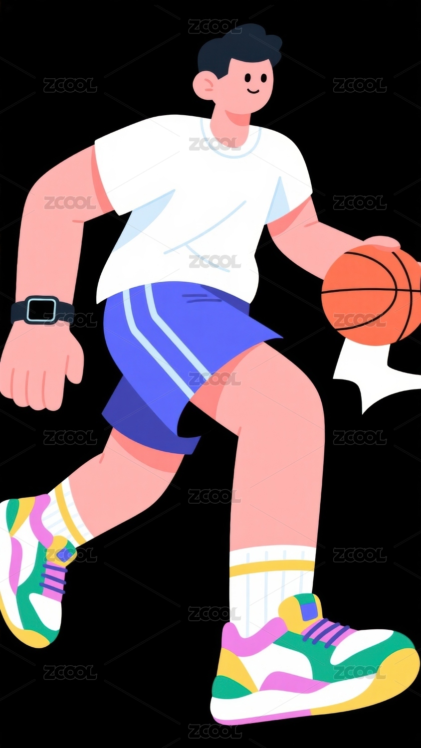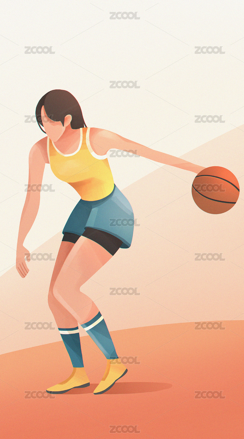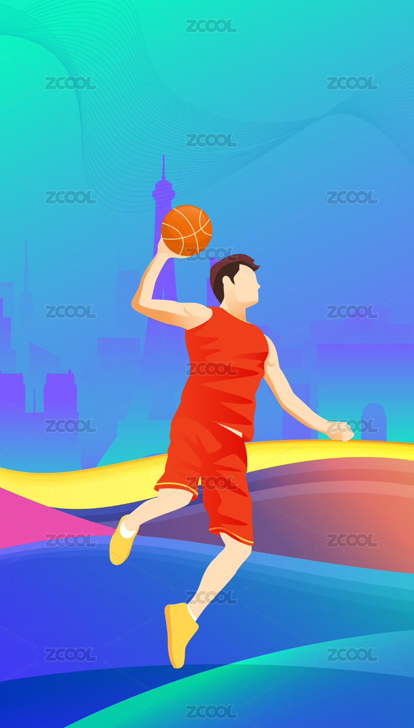 打篮球的男子插画扁平风