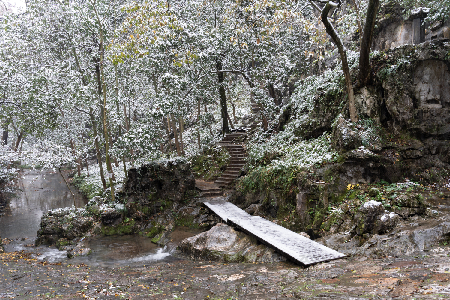 杭州市灵隐飞来峰景区的雪景