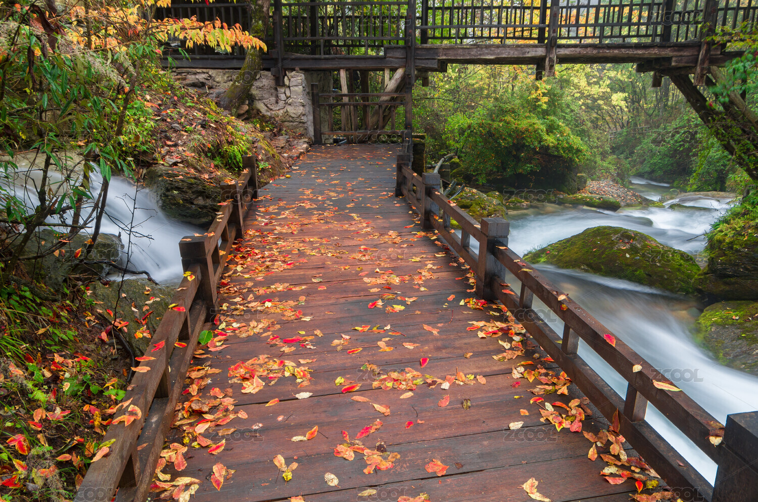 邛崃天台山,落叶,石板路,溪流,小溪,室外,户外,天然,天生,自然