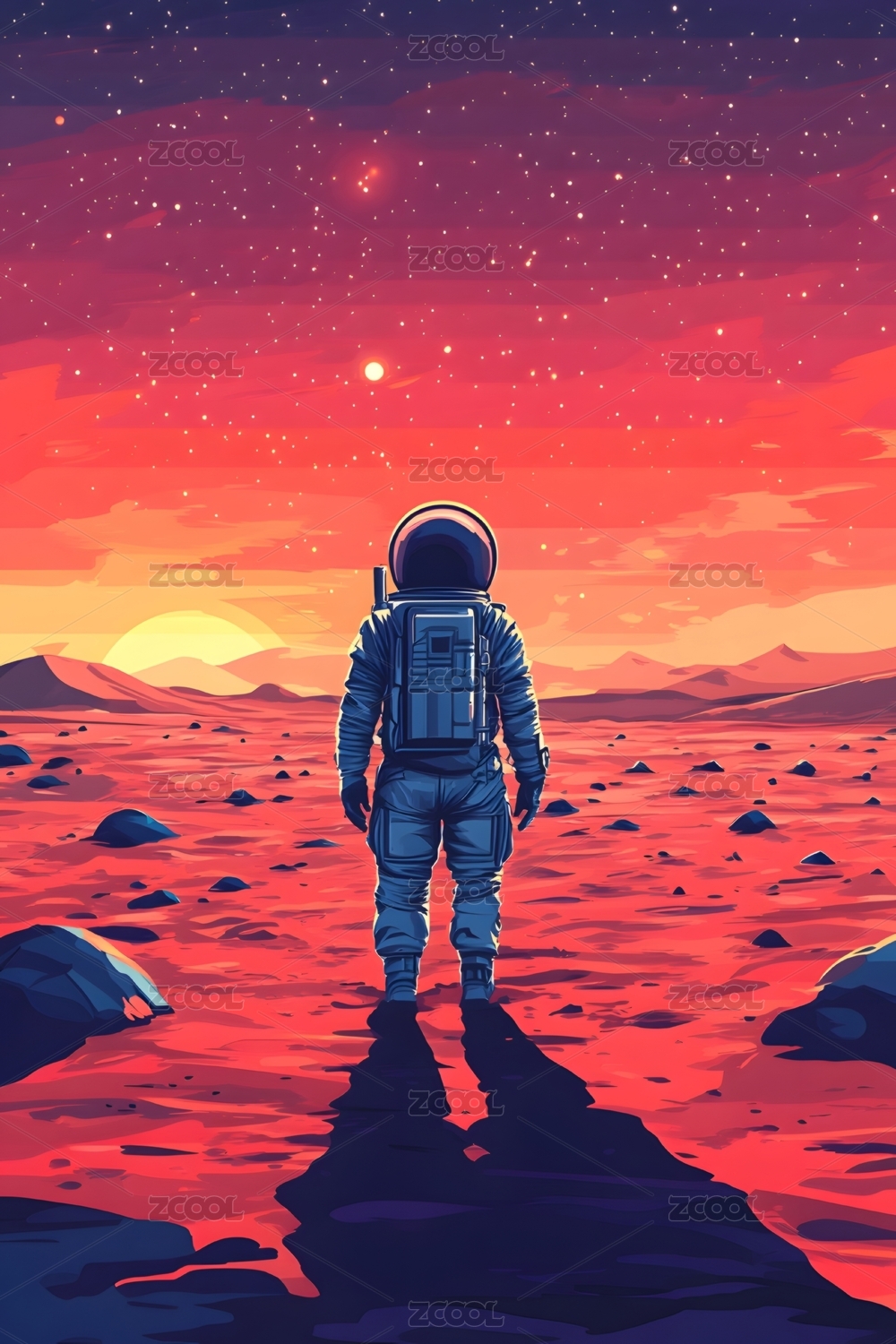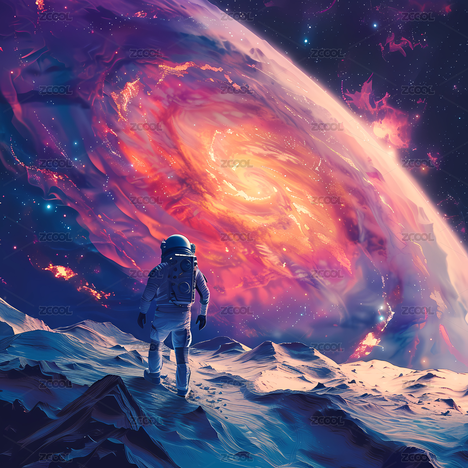 浩瀚星空与宇航员抽象插画海报背景