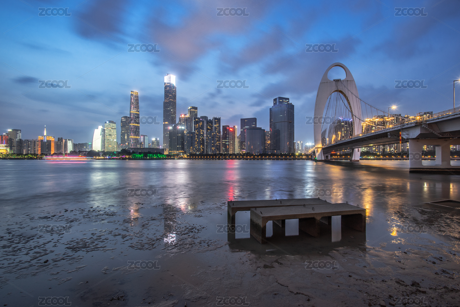 广州珠江两岸广州塔东塔西塔建筑群天际线