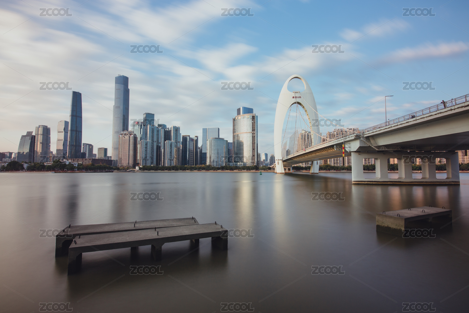中国广东广州猎德大桥和珠江新城CBD城市天际线