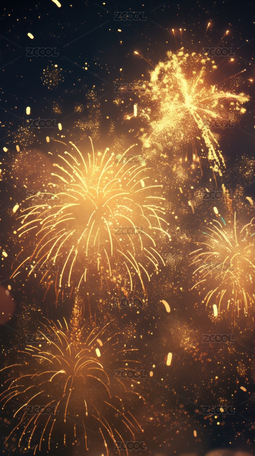 璀璨烟火新年盛景红金色喜庆