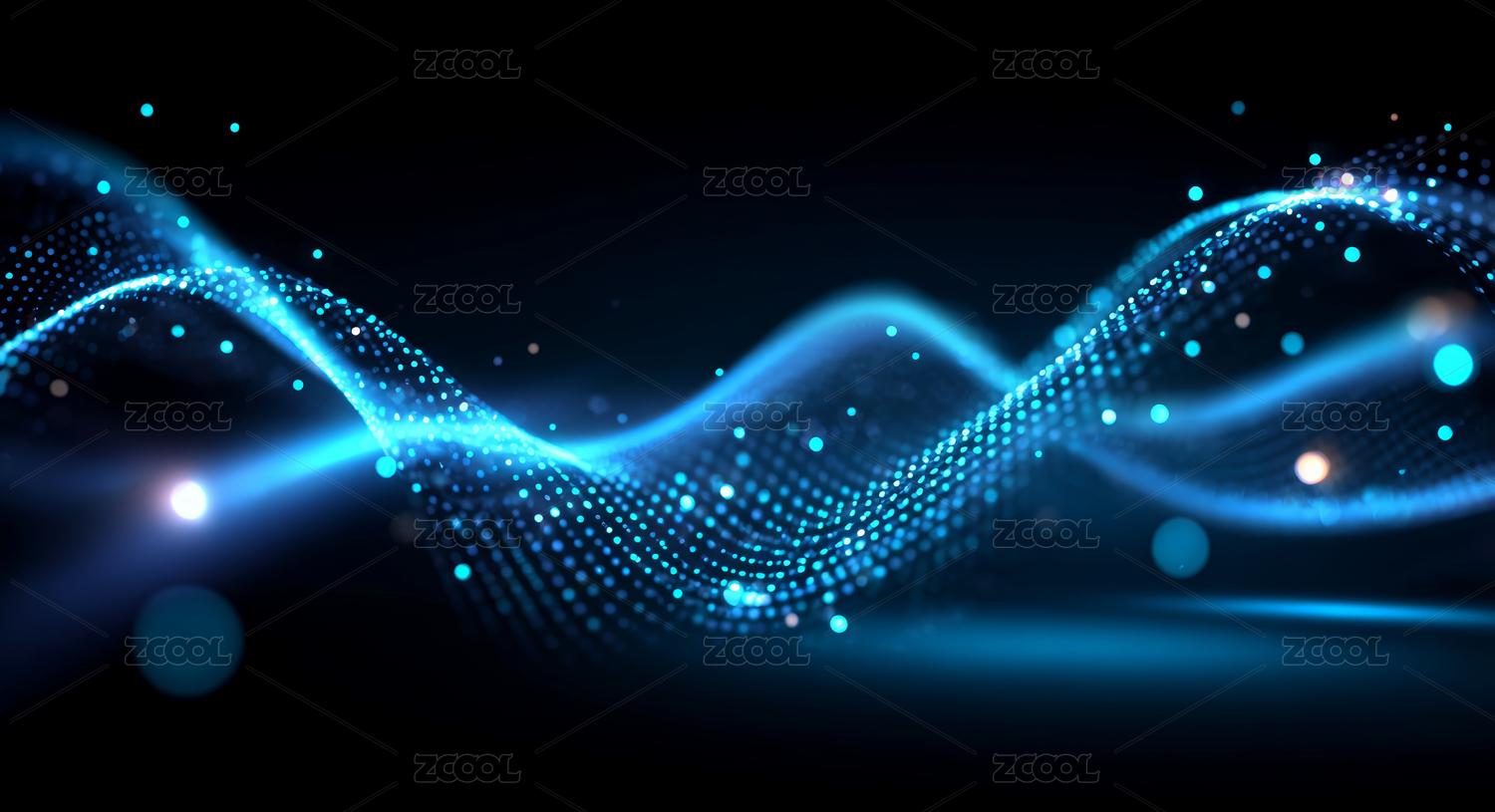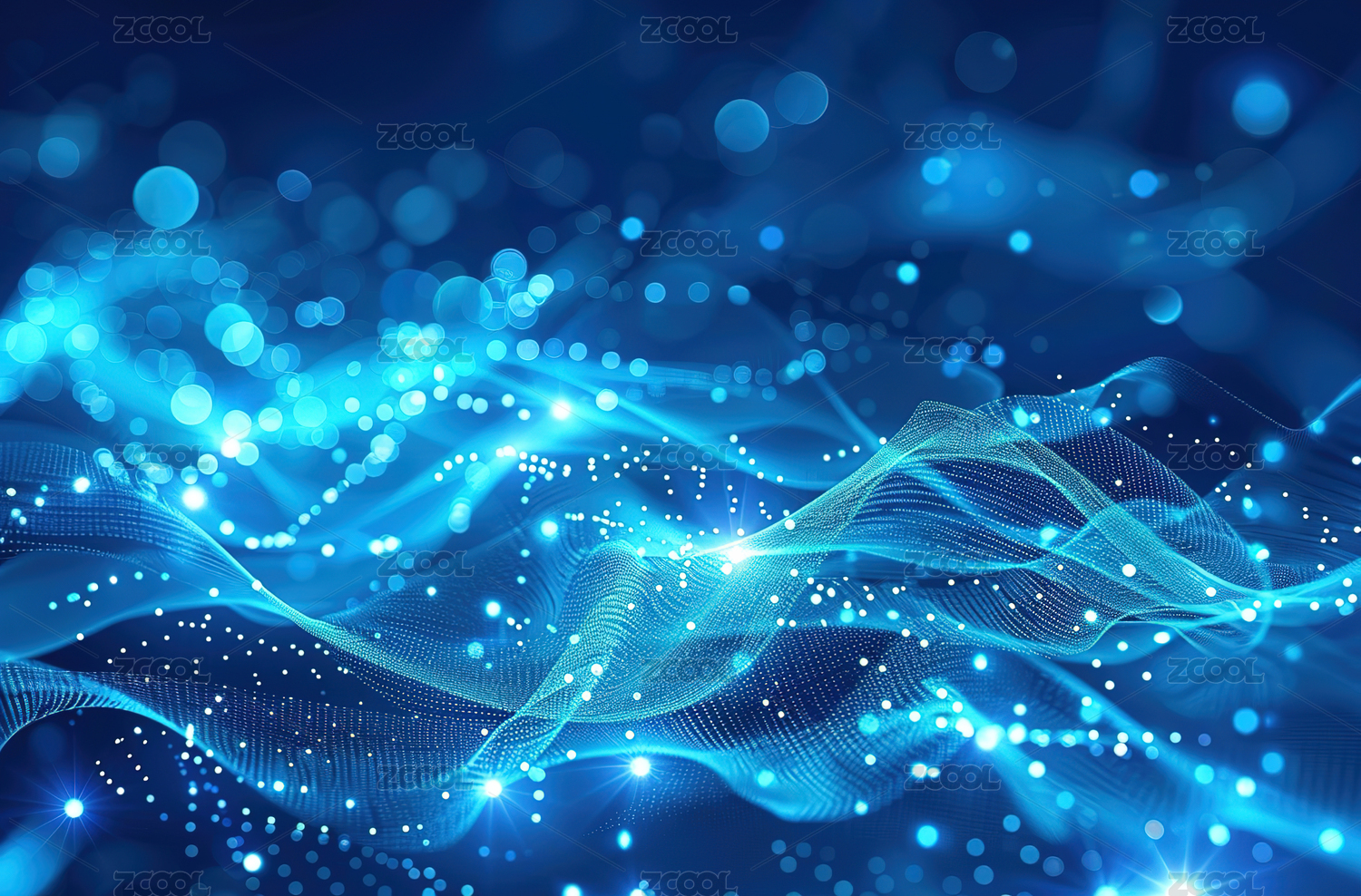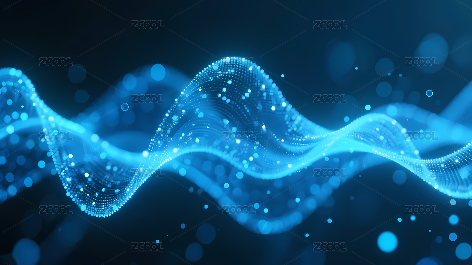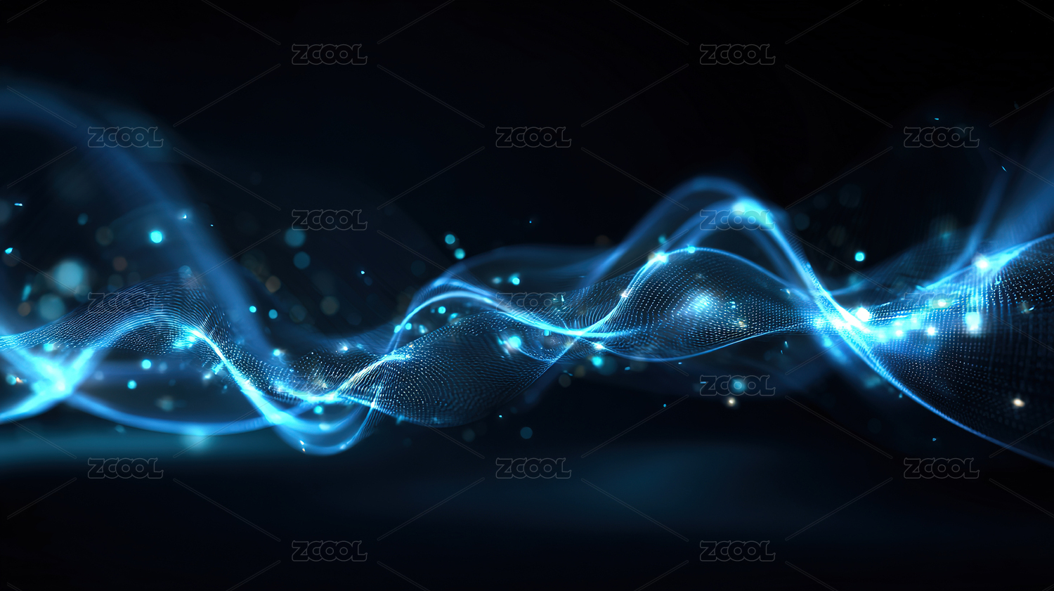 蓝色发光能量粒子和线条的明亮波抽象背景