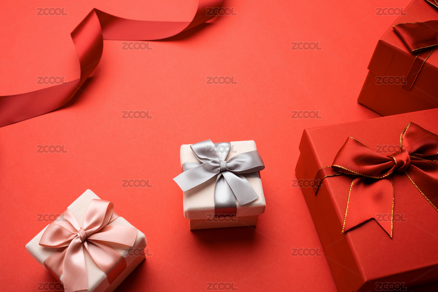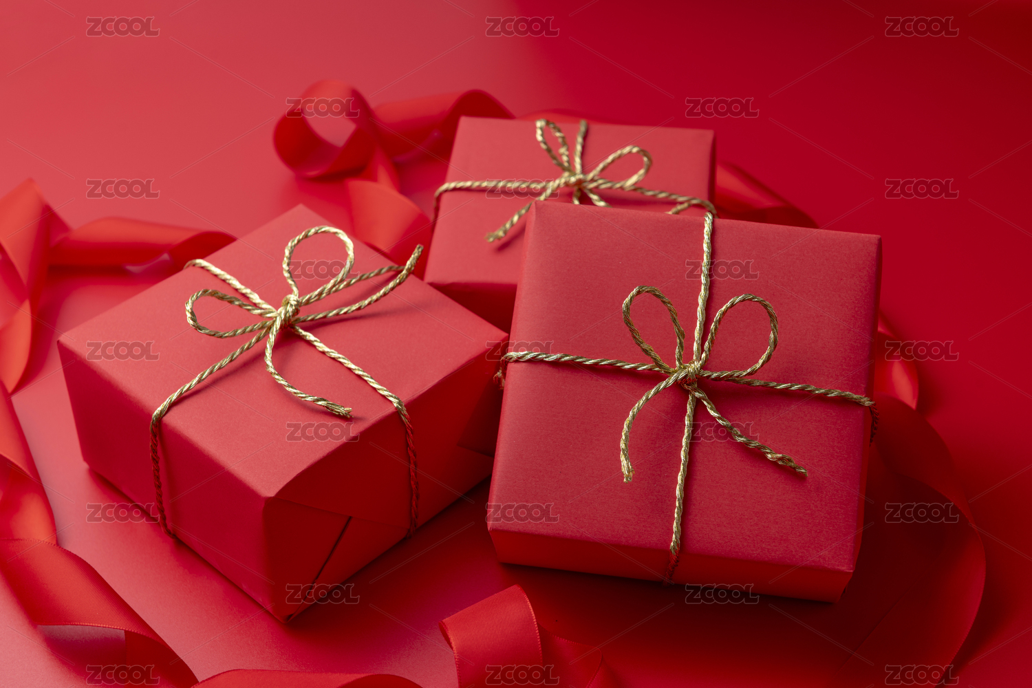 几个堆叠的大红色礼物盒子的特写