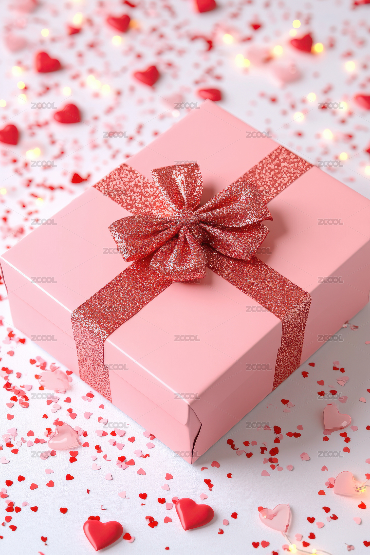 浪漫粉色礼物盒与心形装饰