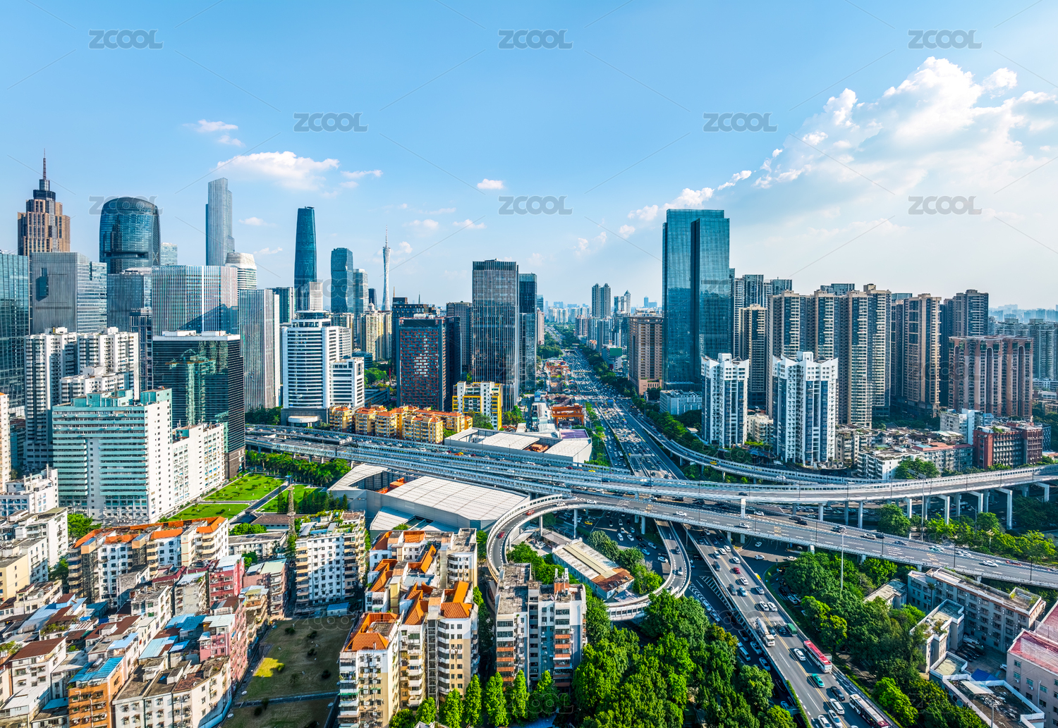 航拍视角鸟瞰广州珠江新城晴天的城市