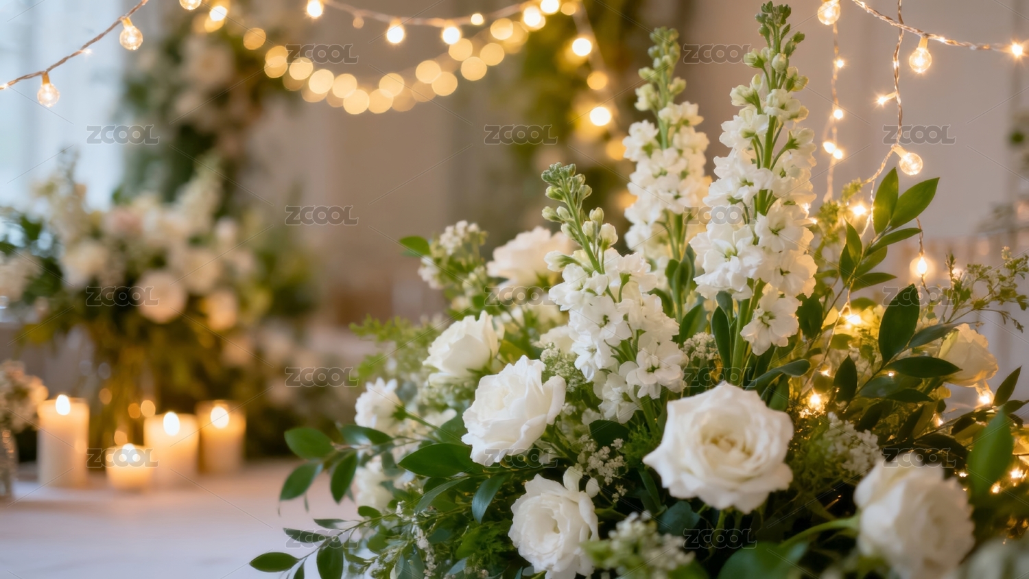 桌面,花朵,白玫瑰,花团,蜡烛,温馨,温暖,浪漫,背景