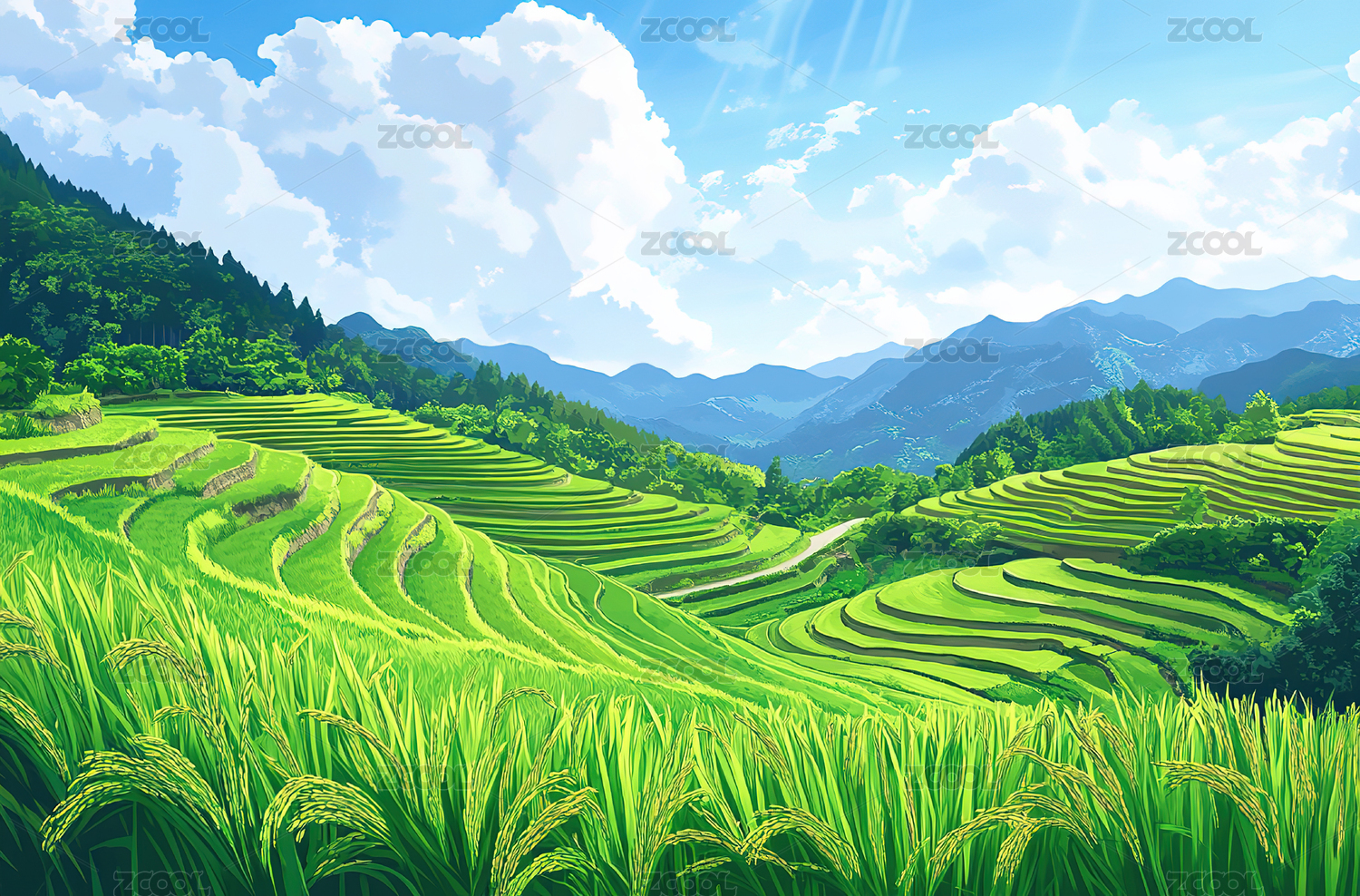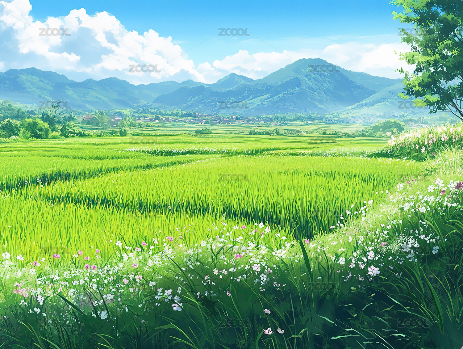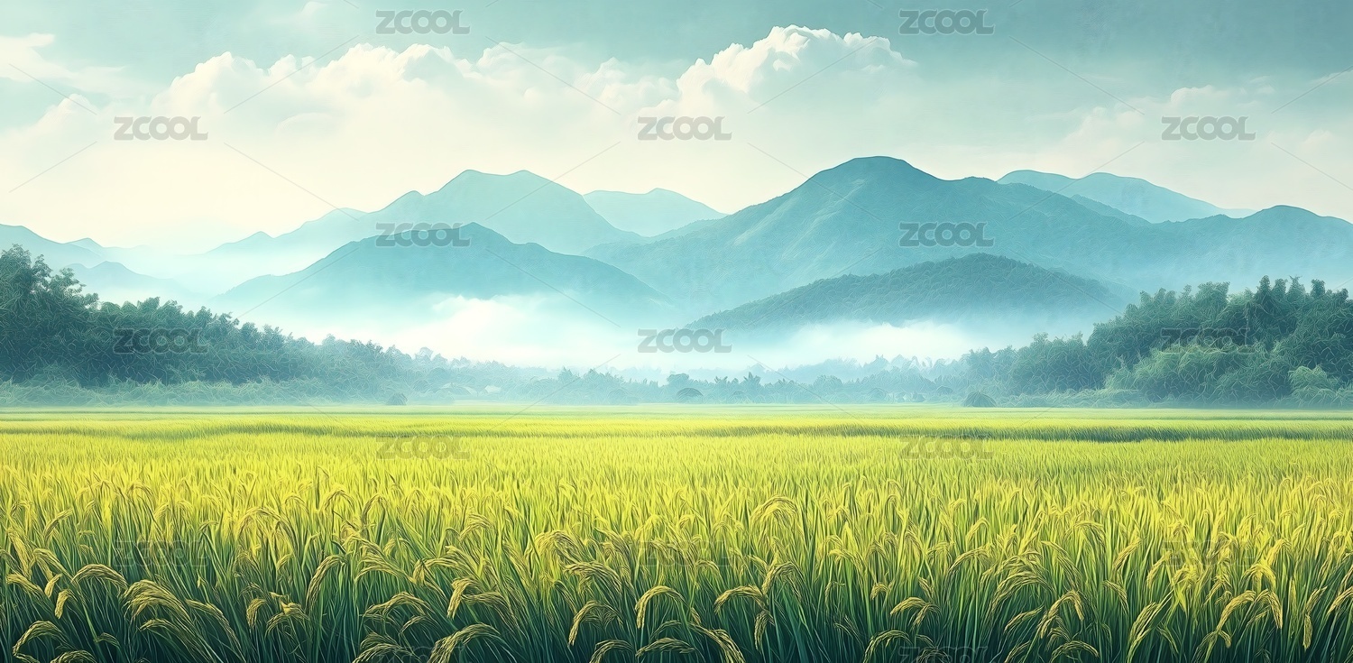 自然,稻穗,稻田,绿油油,田园,田野,宁静,乡村,景象,风光