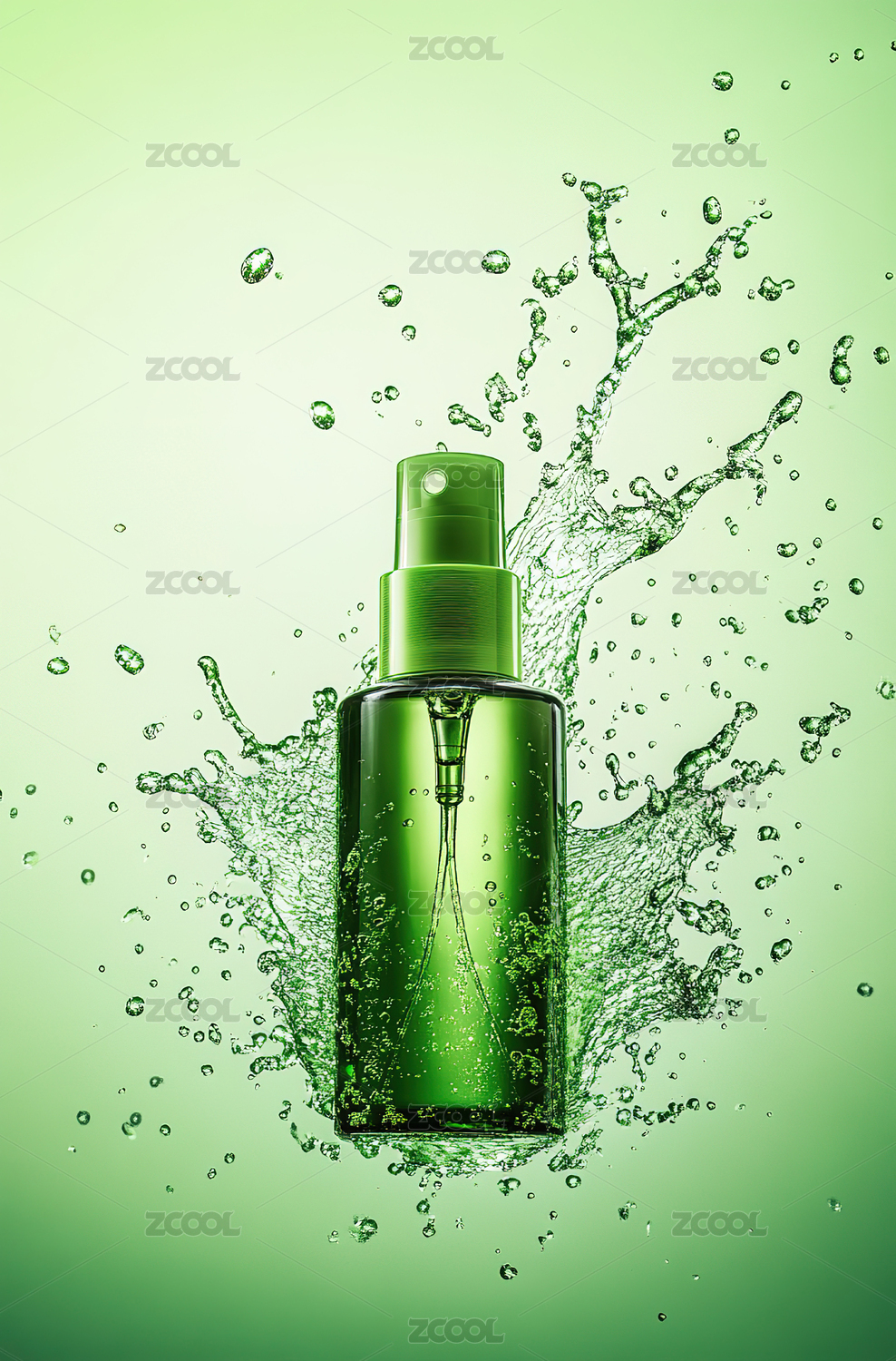 绿色喷雾瓶与水珠画面