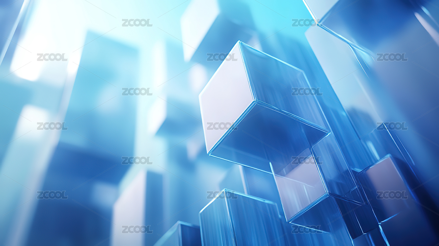 层叠排列荧光色立方体玻璃晶体3D立体插画