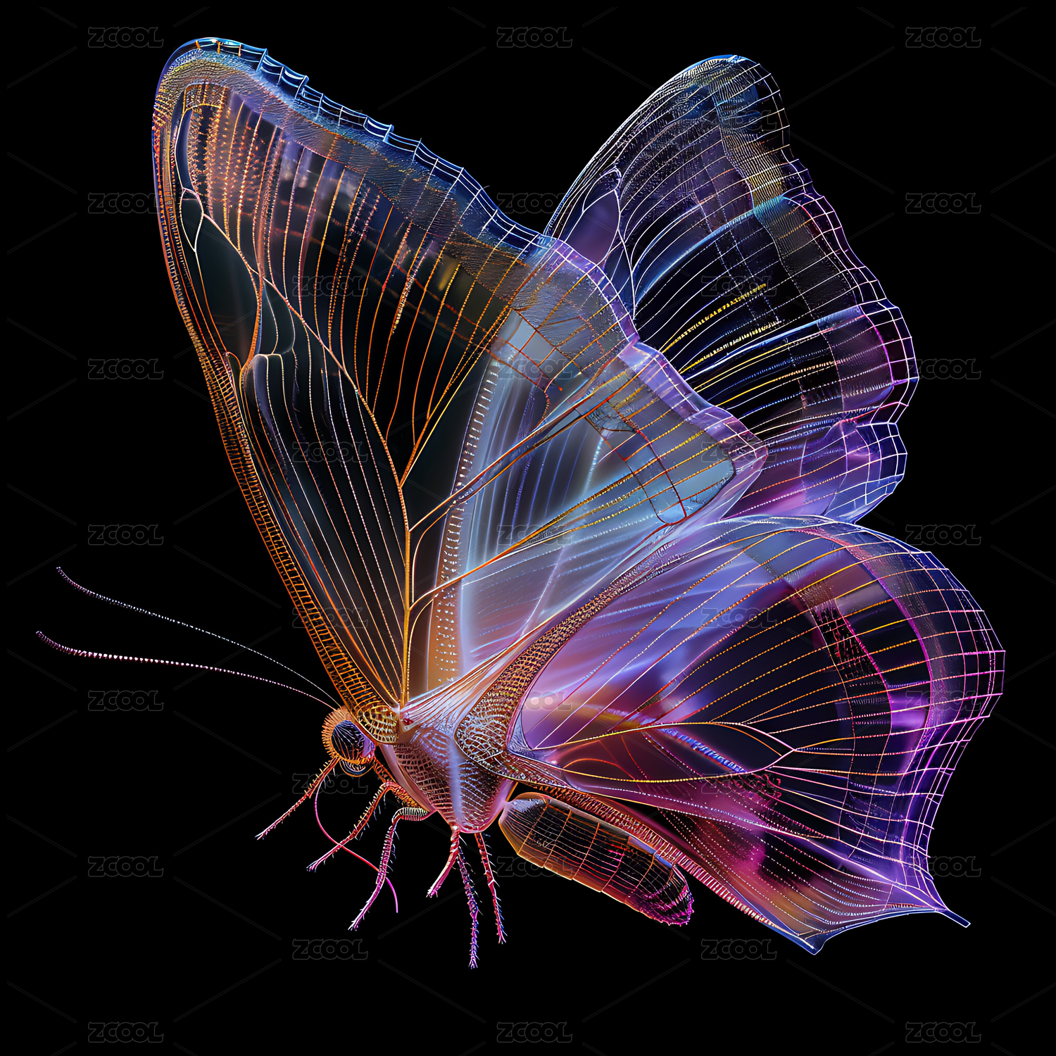 蝴蝶赛博朋克风格插画