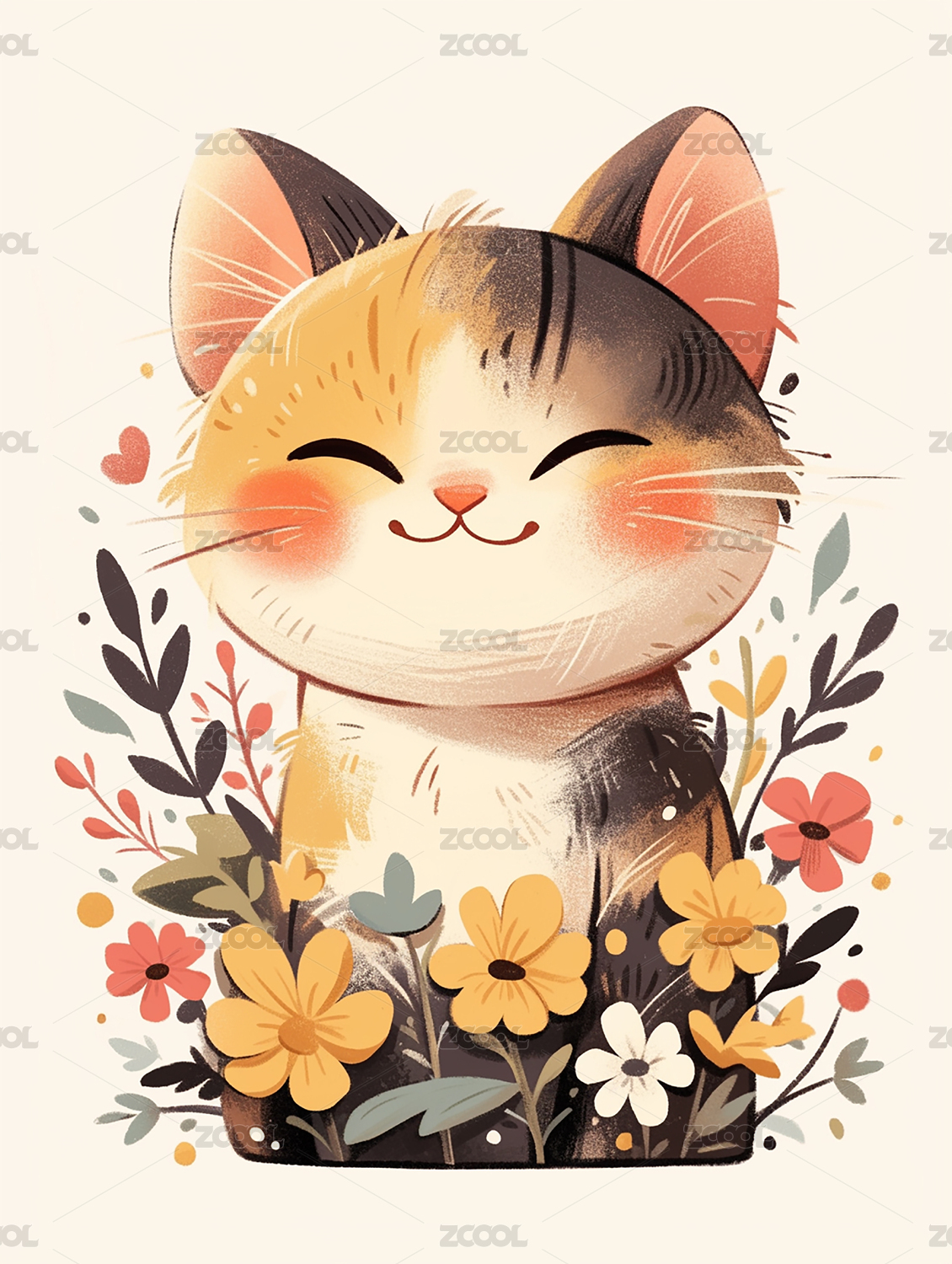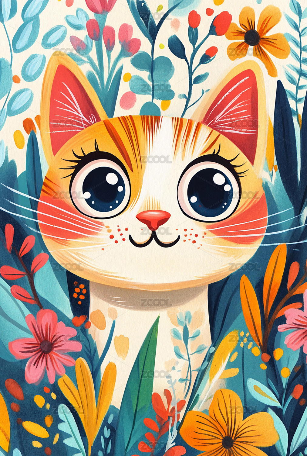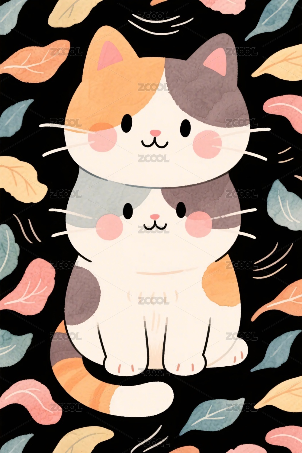 数码波西米亚猫猫图案装饰抽象图形海报背景