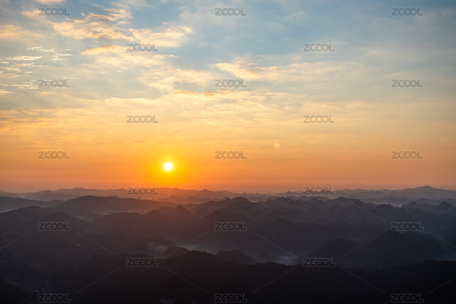 贵阳鸳鸯坡 山峦间的日出天空景象