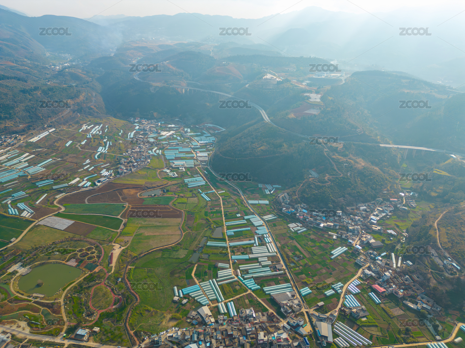 乡村,田园,农田,绿地,植被,航拍,鸟瞰,视角,自然,风景
