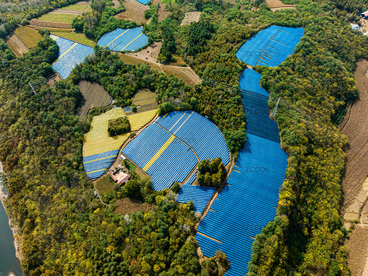 中国浙江杭州鸬鸟镇大棚种植航拍