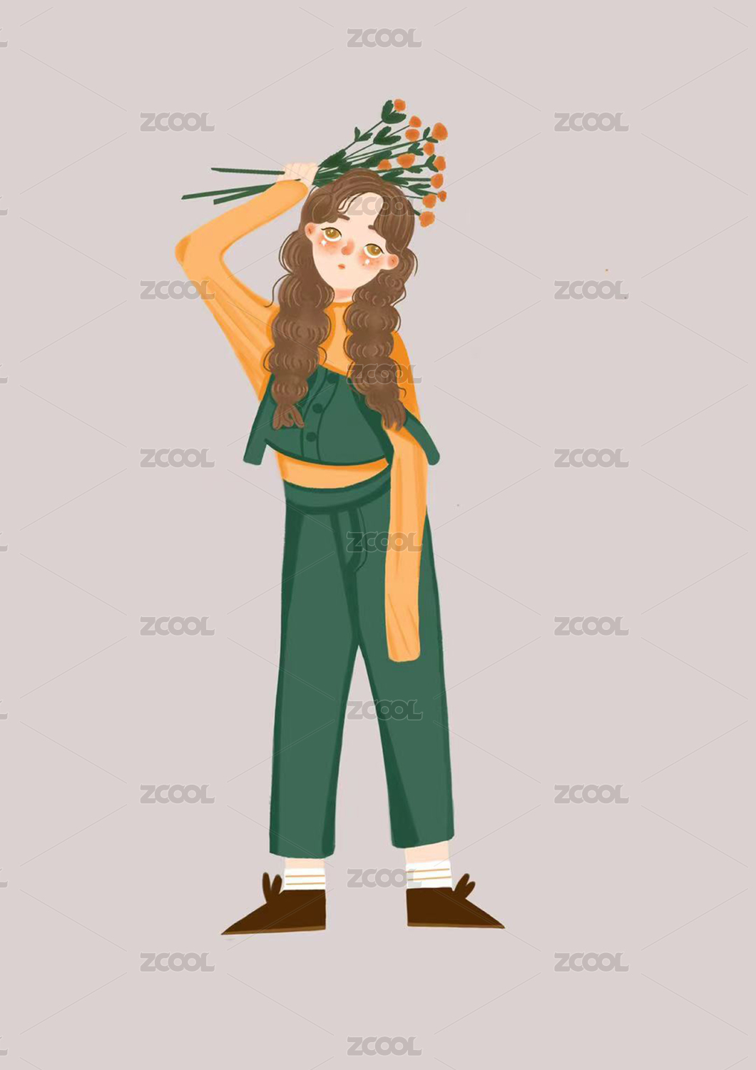 手持花的女孩