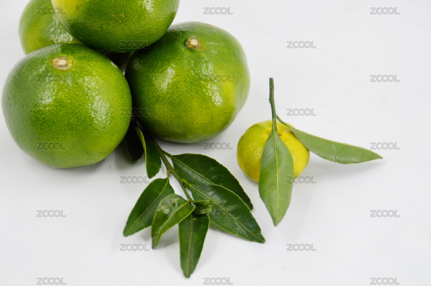 绿色的橘子放在白色桌面上
