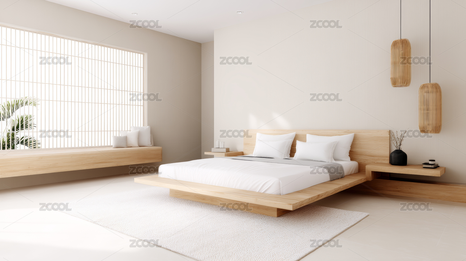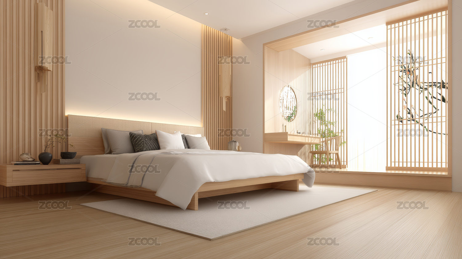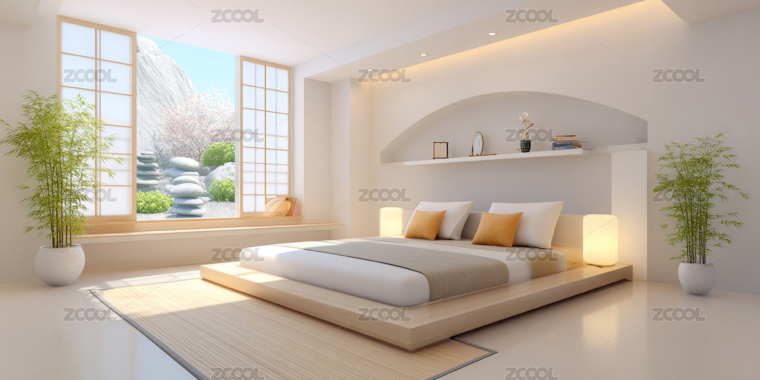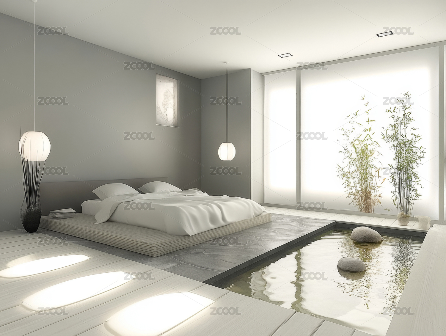 禅意,中式装修,白色卧室,原木风卧室,现代风格,室内环境白色沙发,沙发,灰色,抱枕,圆形物体