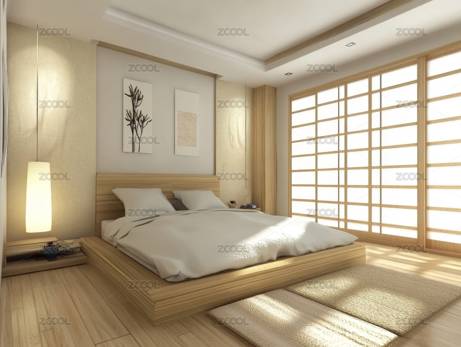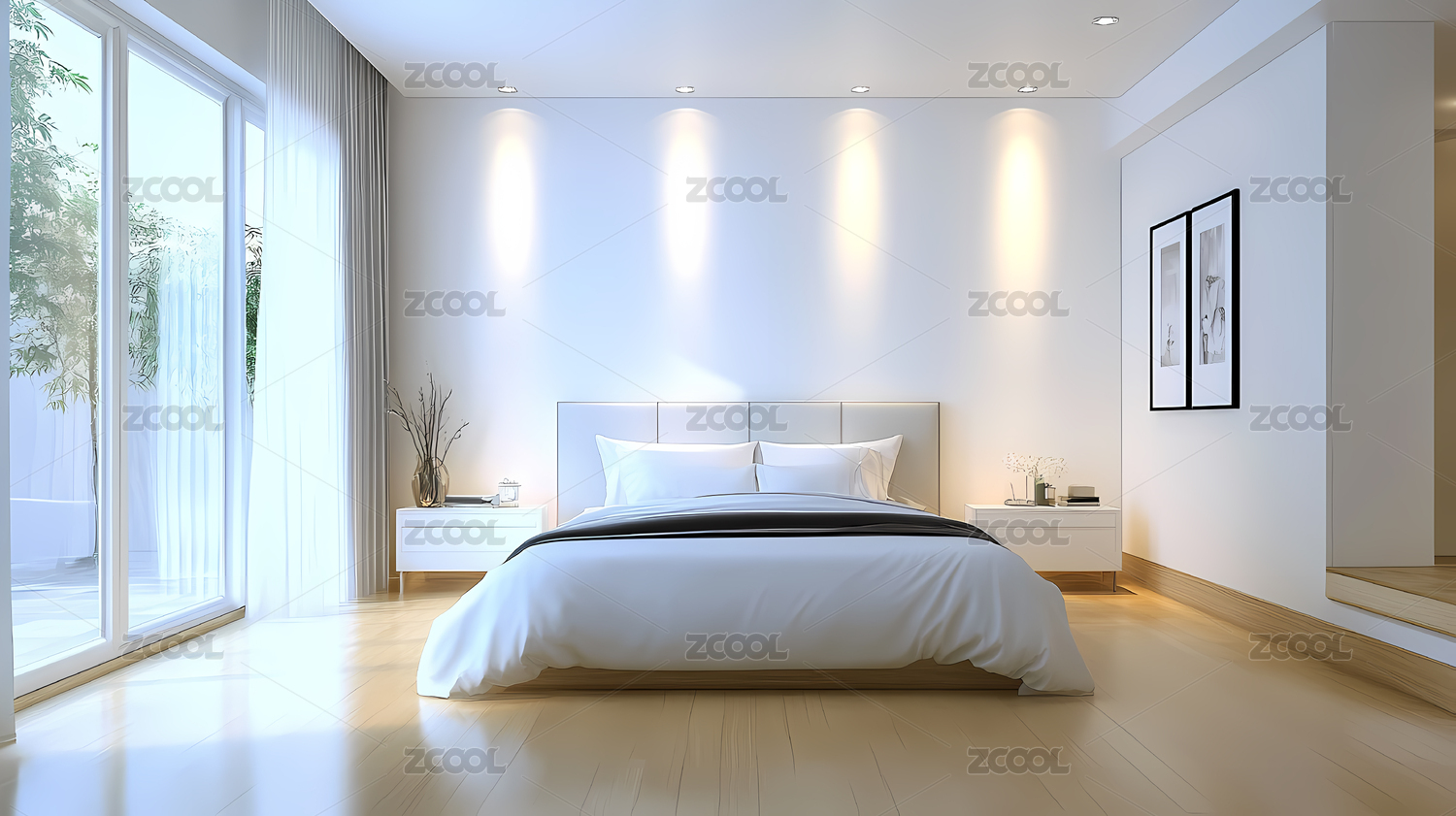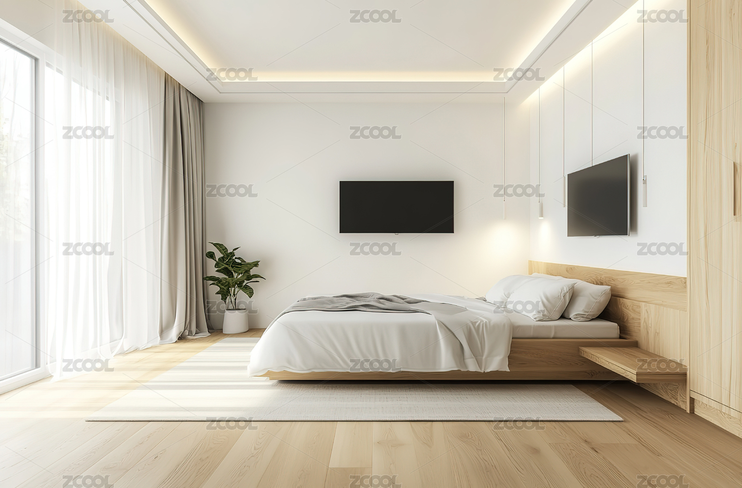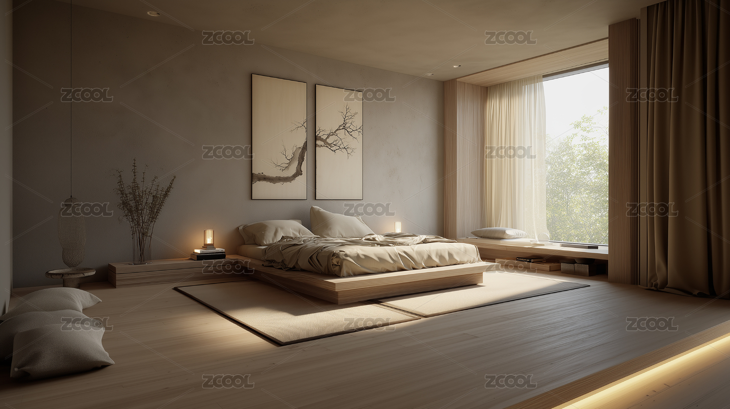 禅意,中式装修,白色卧室,原木风卧室,现代风格,室内环境白色沙发,沙发,灰色,抱枕,圆形物体