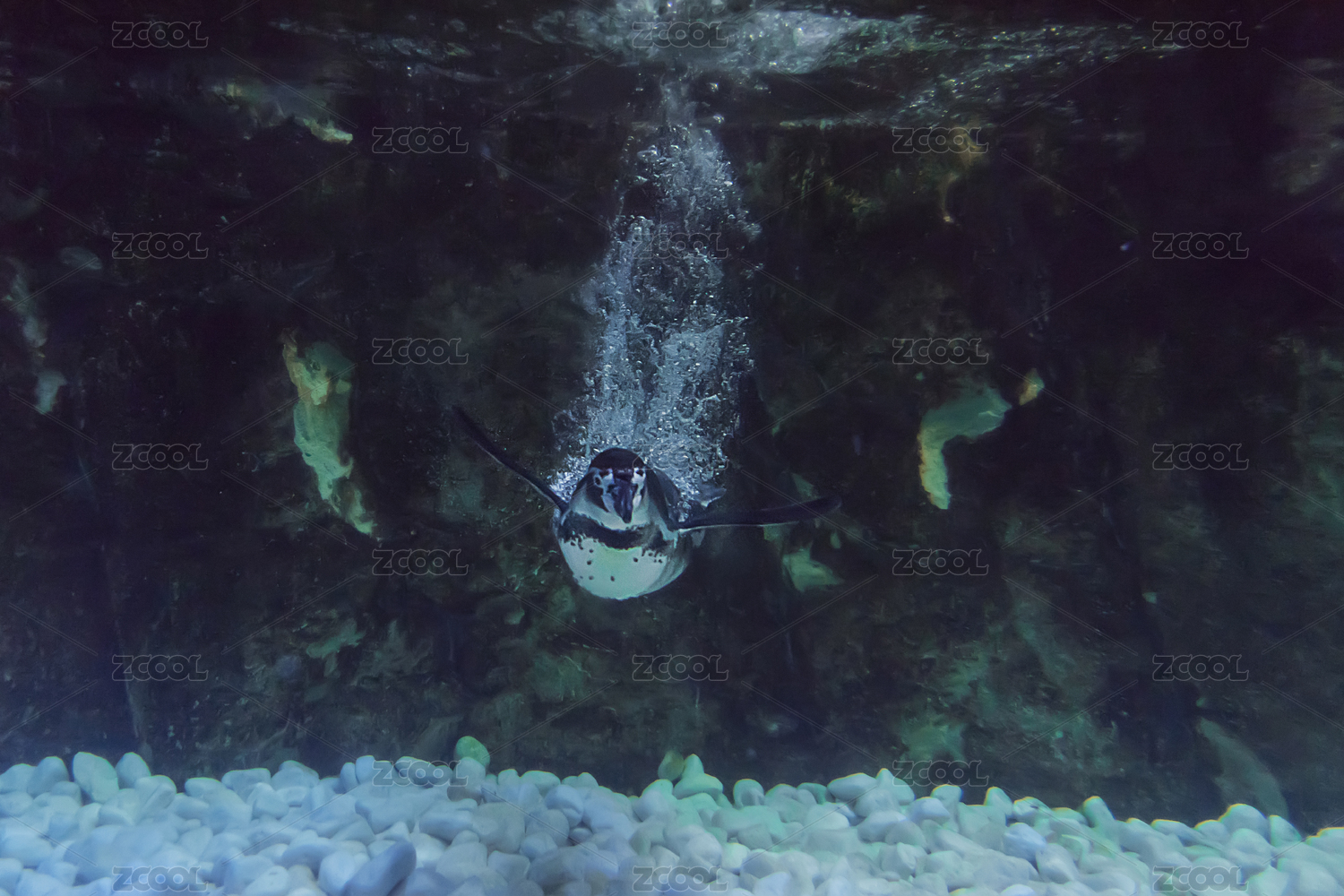 冲入水中溅起水花的企鹅