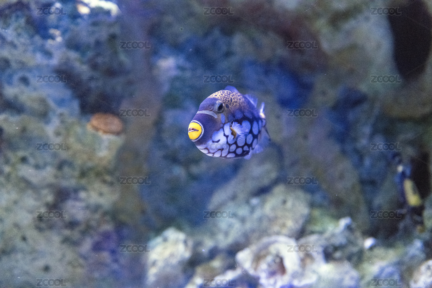 花纹奇特,体型小巧可爱的扳机鱼在大海中游动