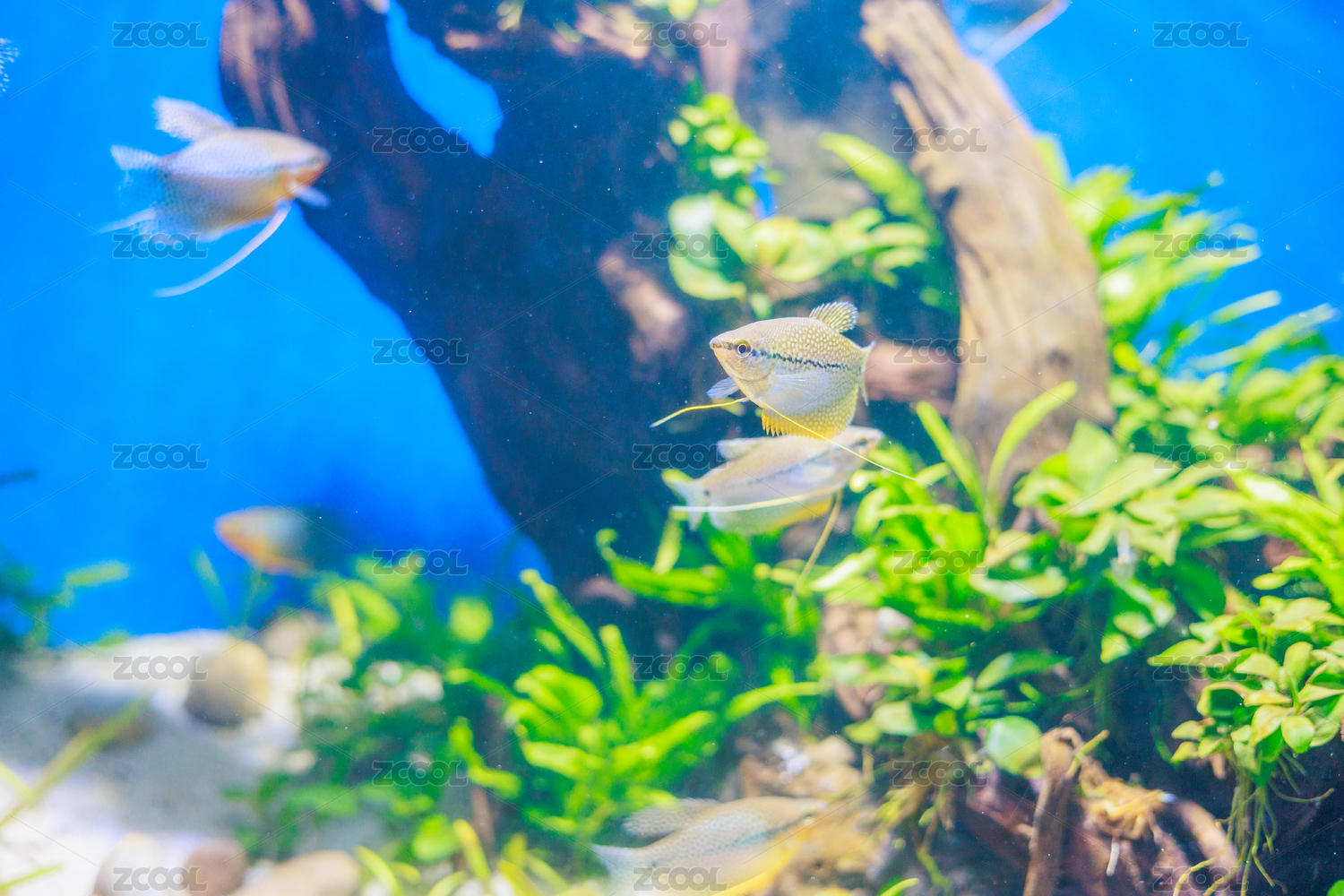大型水族箱中的鱼 珍珠马甲鱼