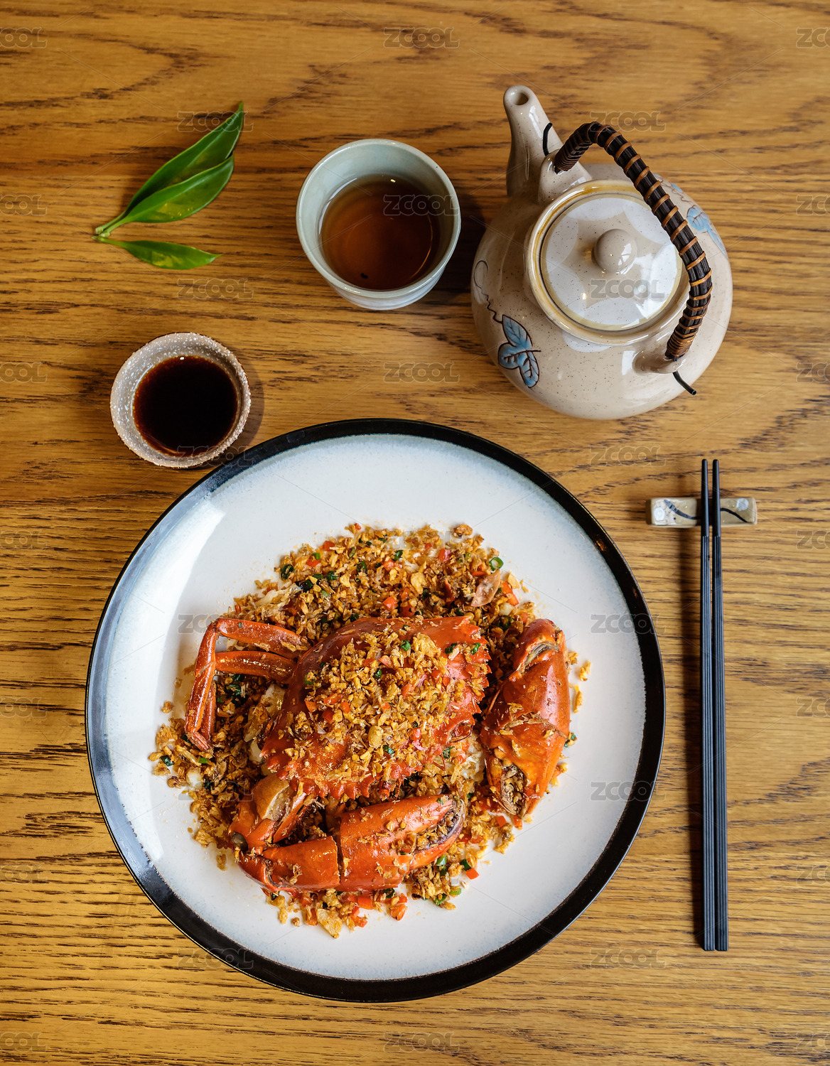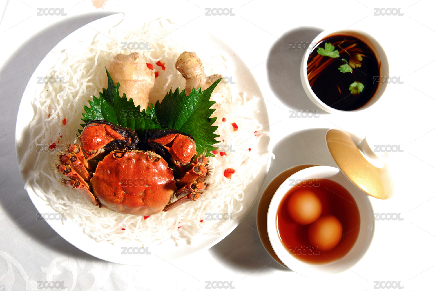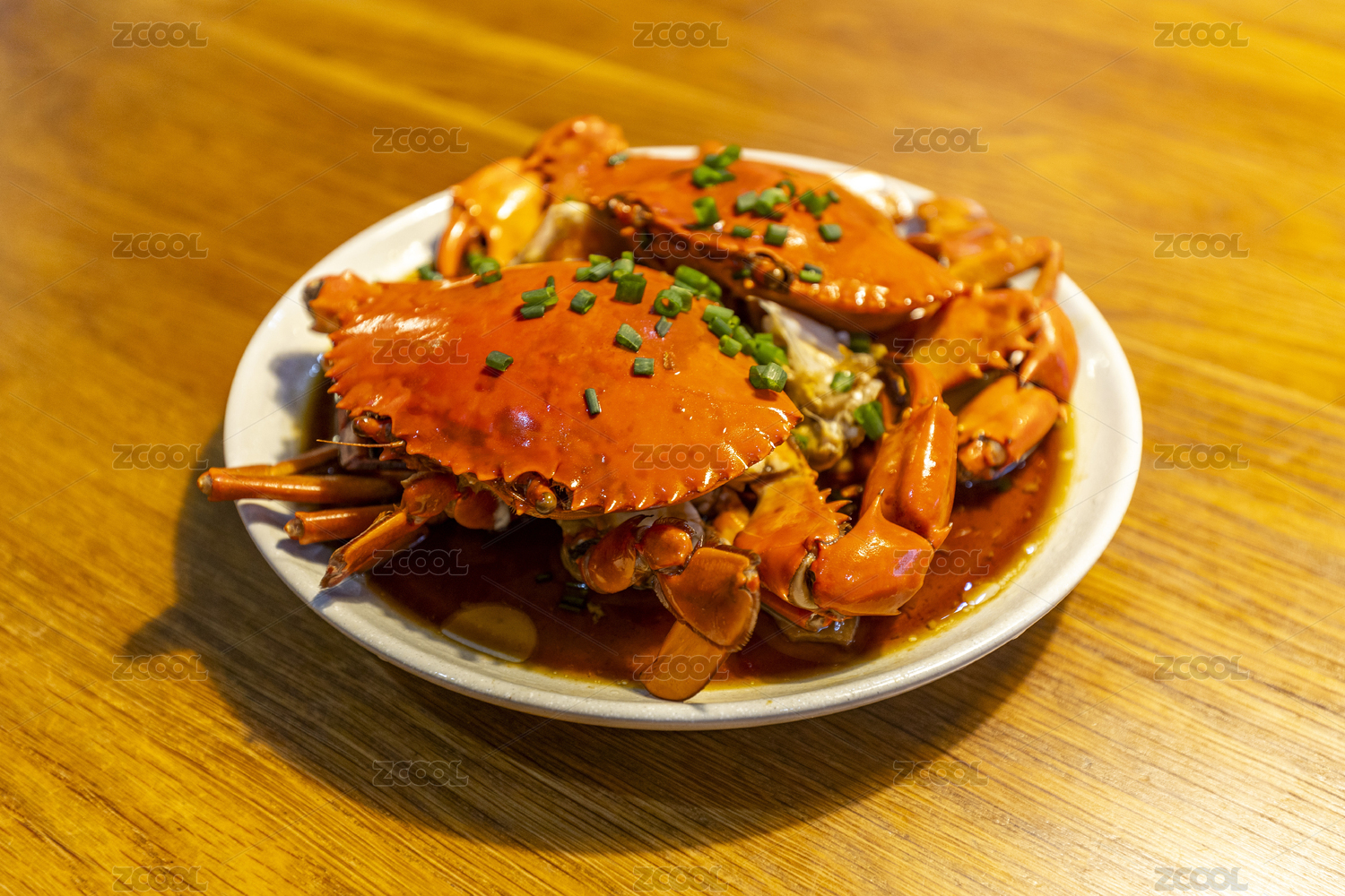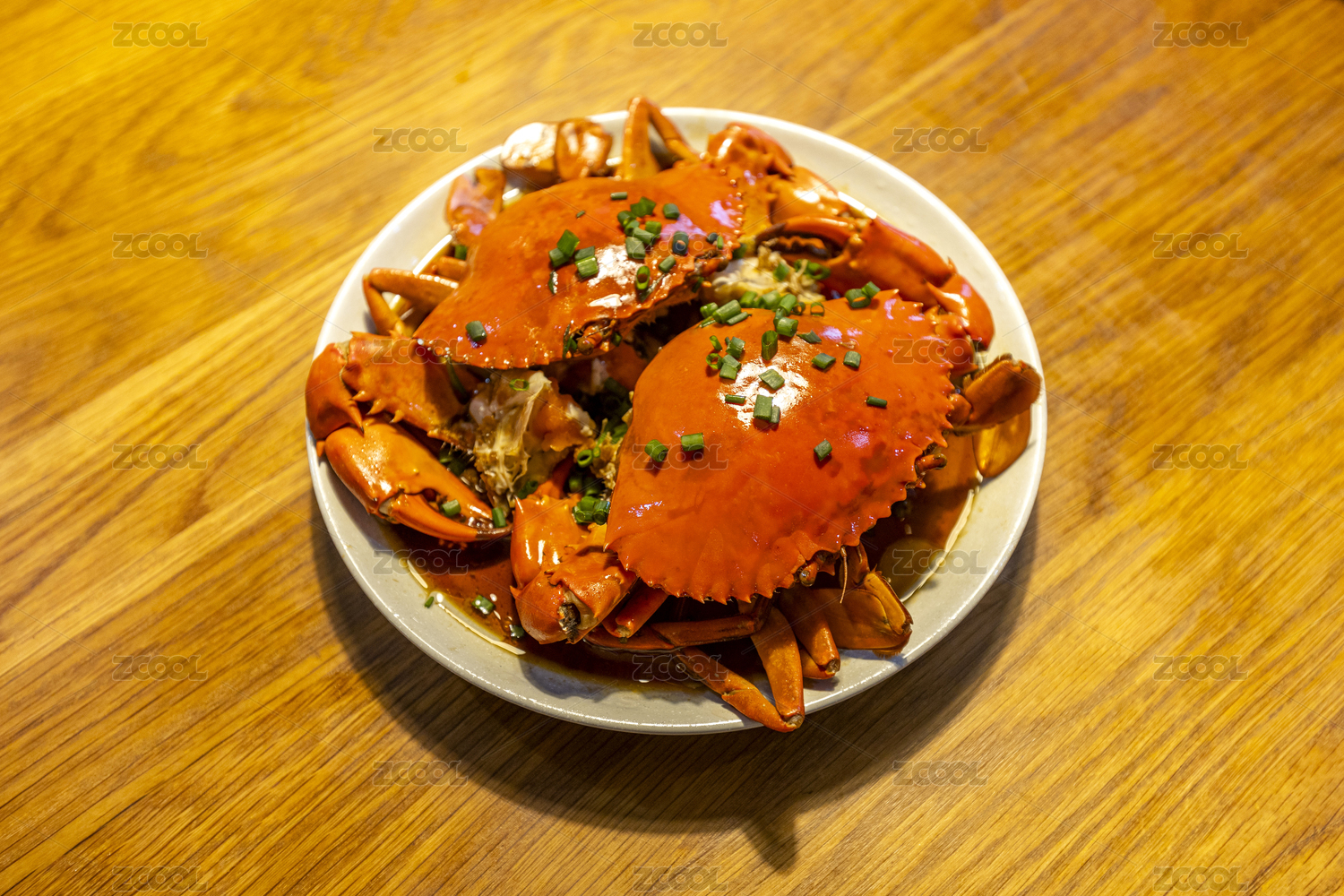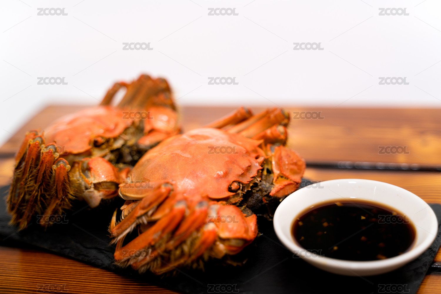 木纹背景上摆放熟的阳澄湖大闸蟹