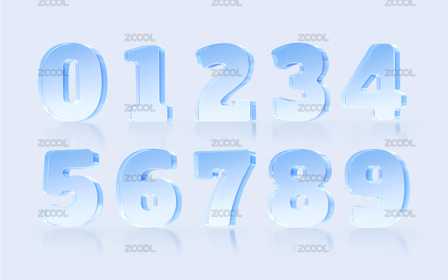 从0到9科技蓝3D数字倒计时玻璃图标合集